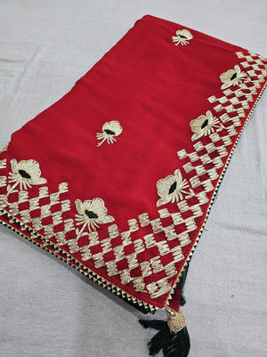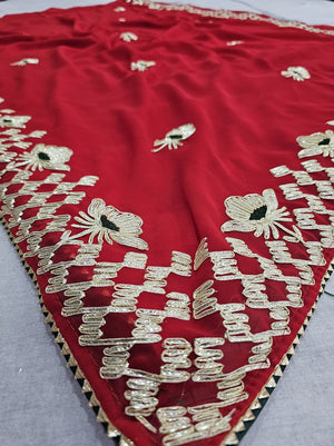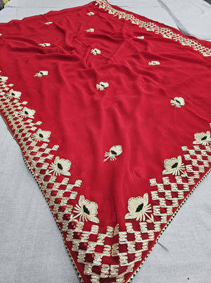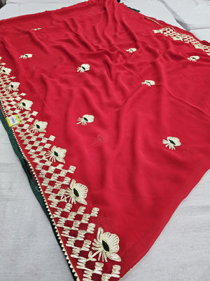 523003 राजस्थानी गोटा पट्टी जॉर्जेट साड़ी - लाल