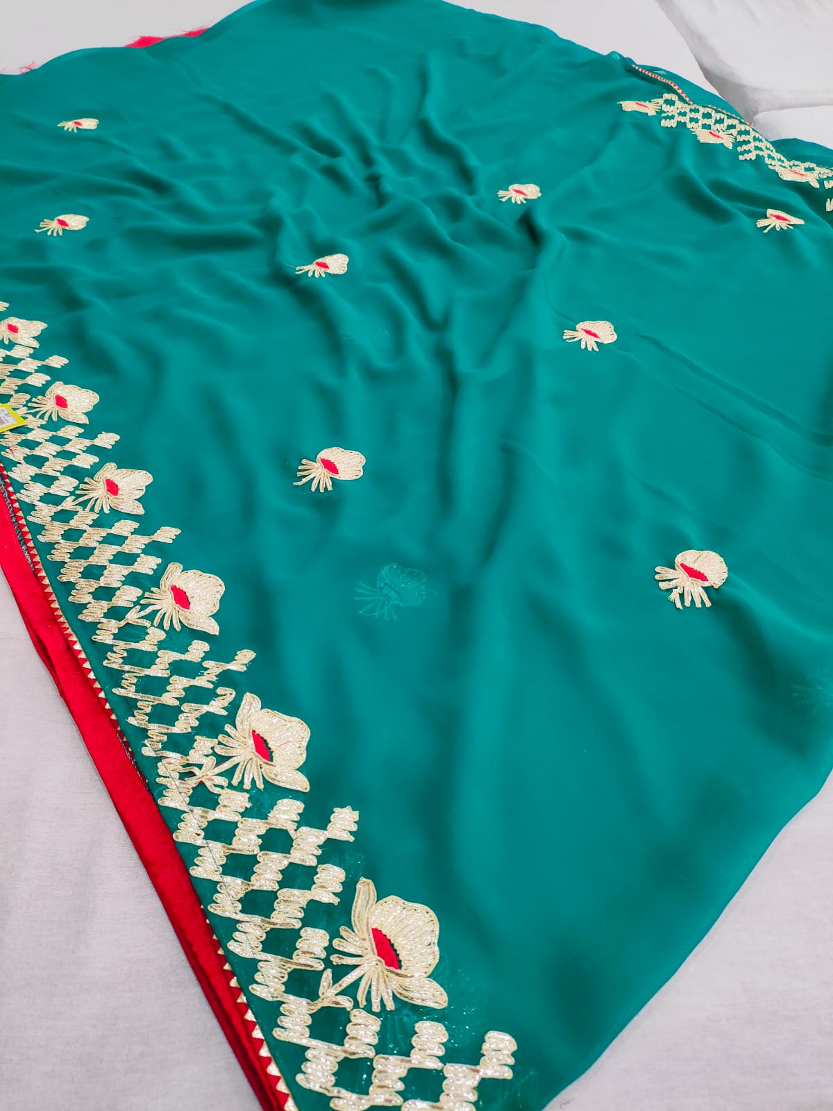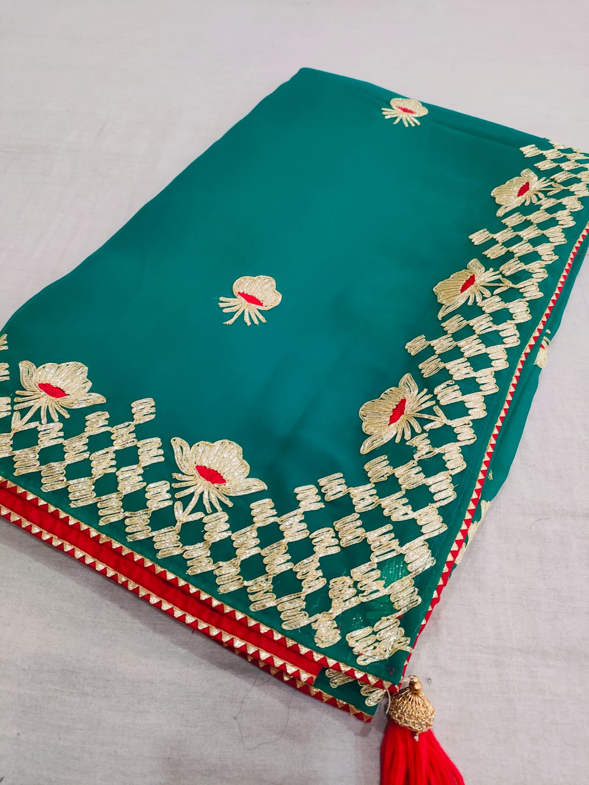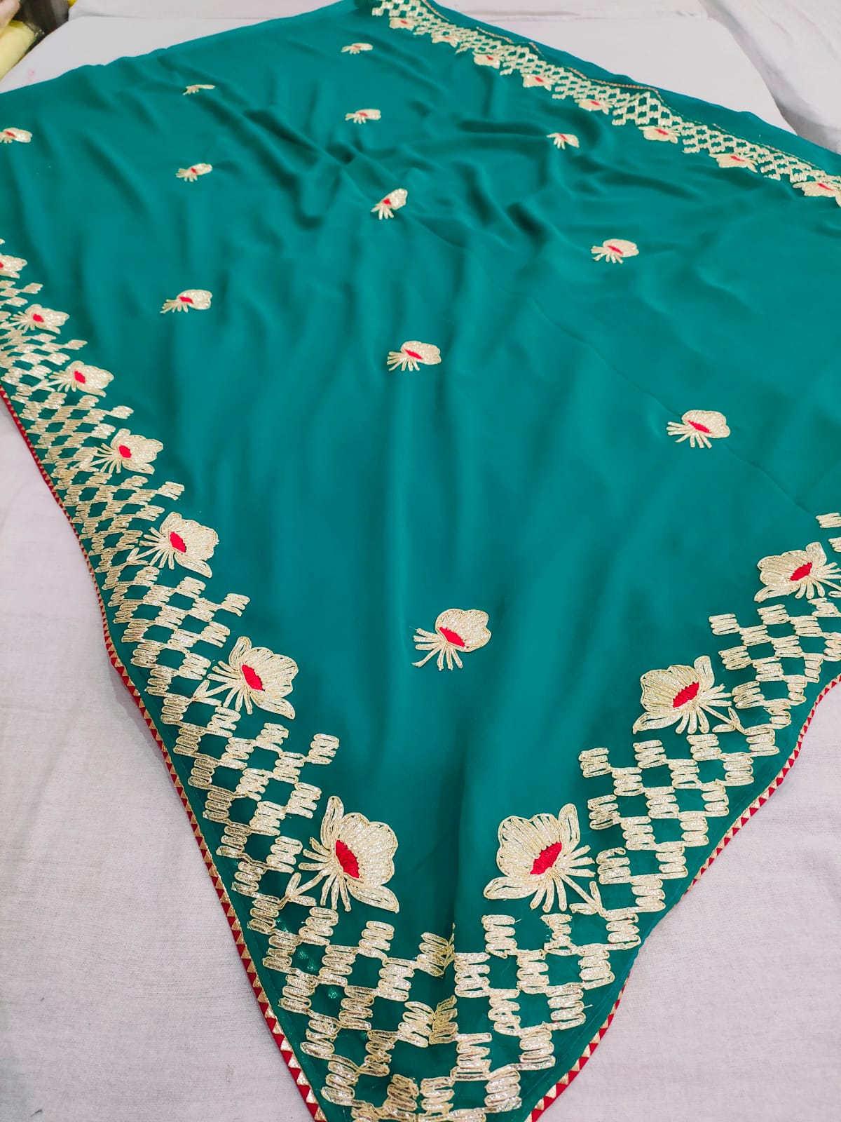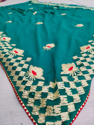 523003 राजस्थानी गोटा पट्टी जॉर्जेट साड़ी - चैती हरा
