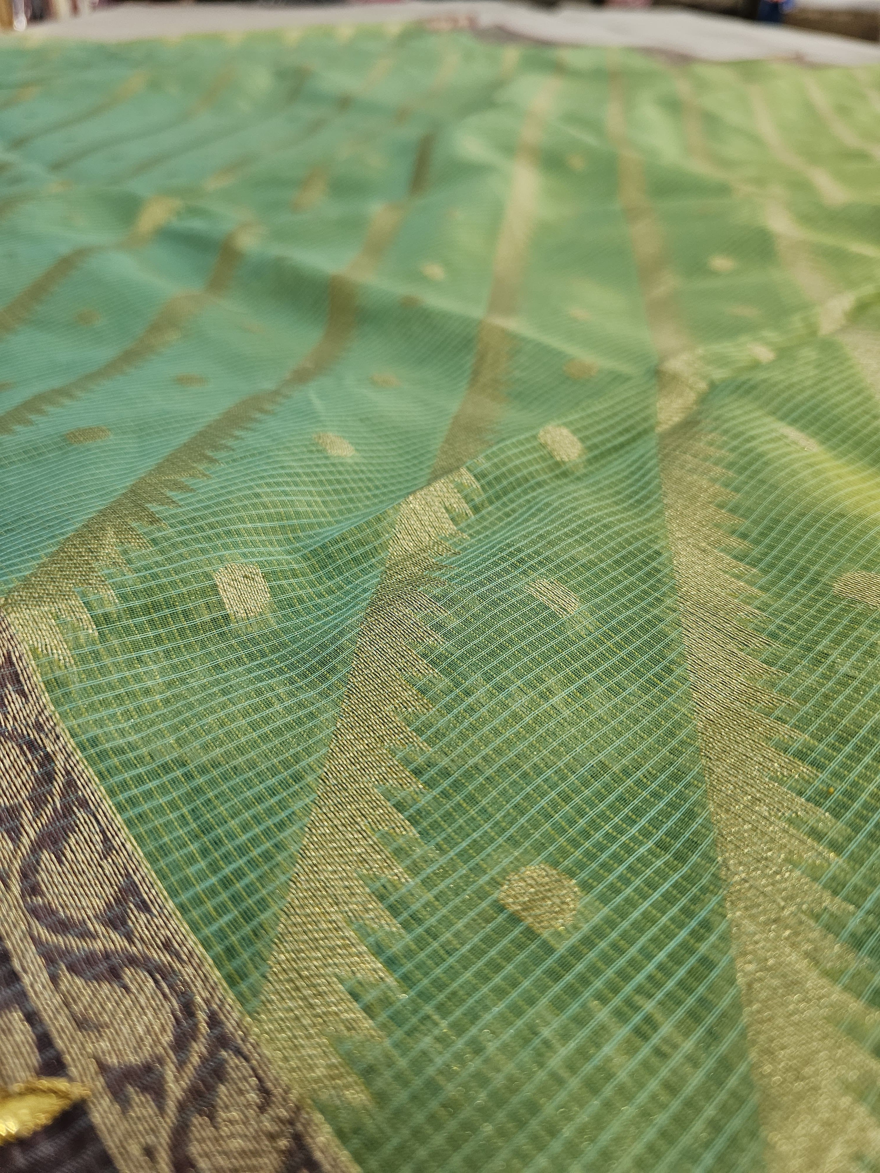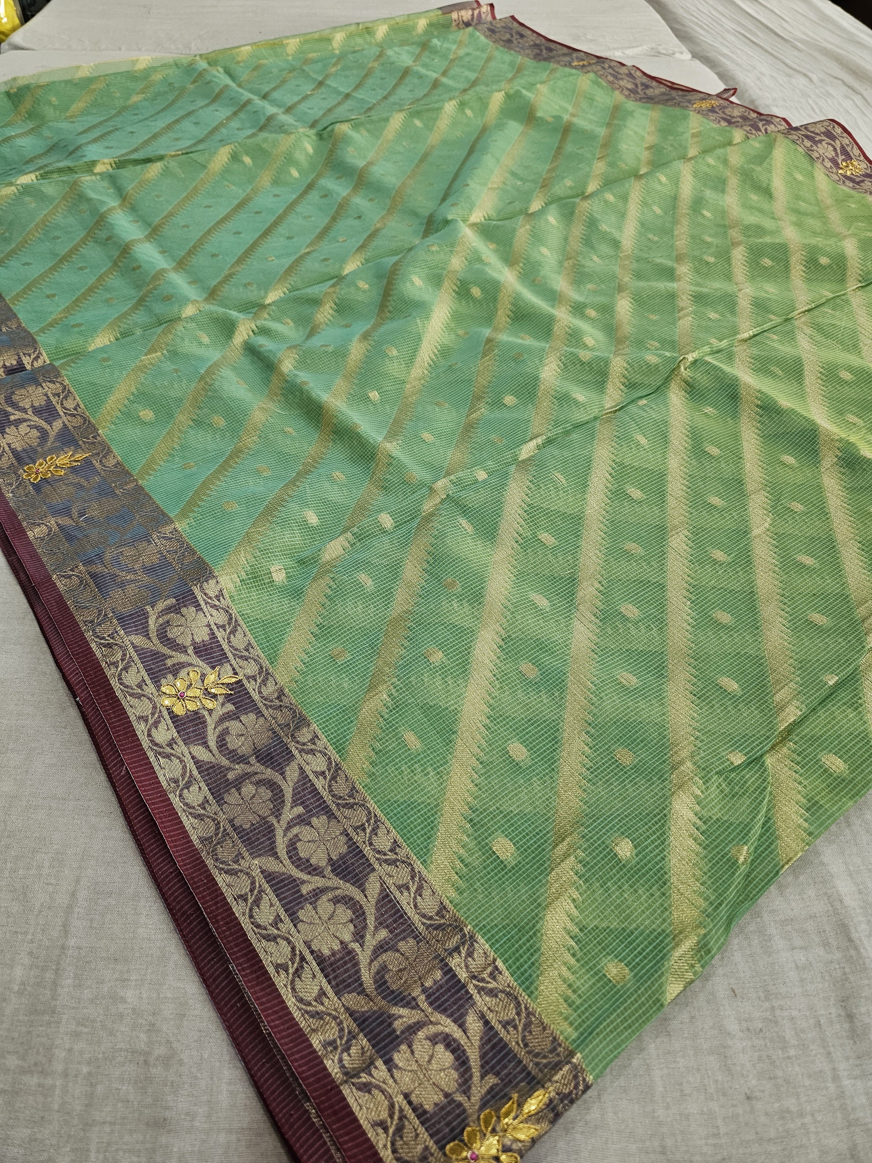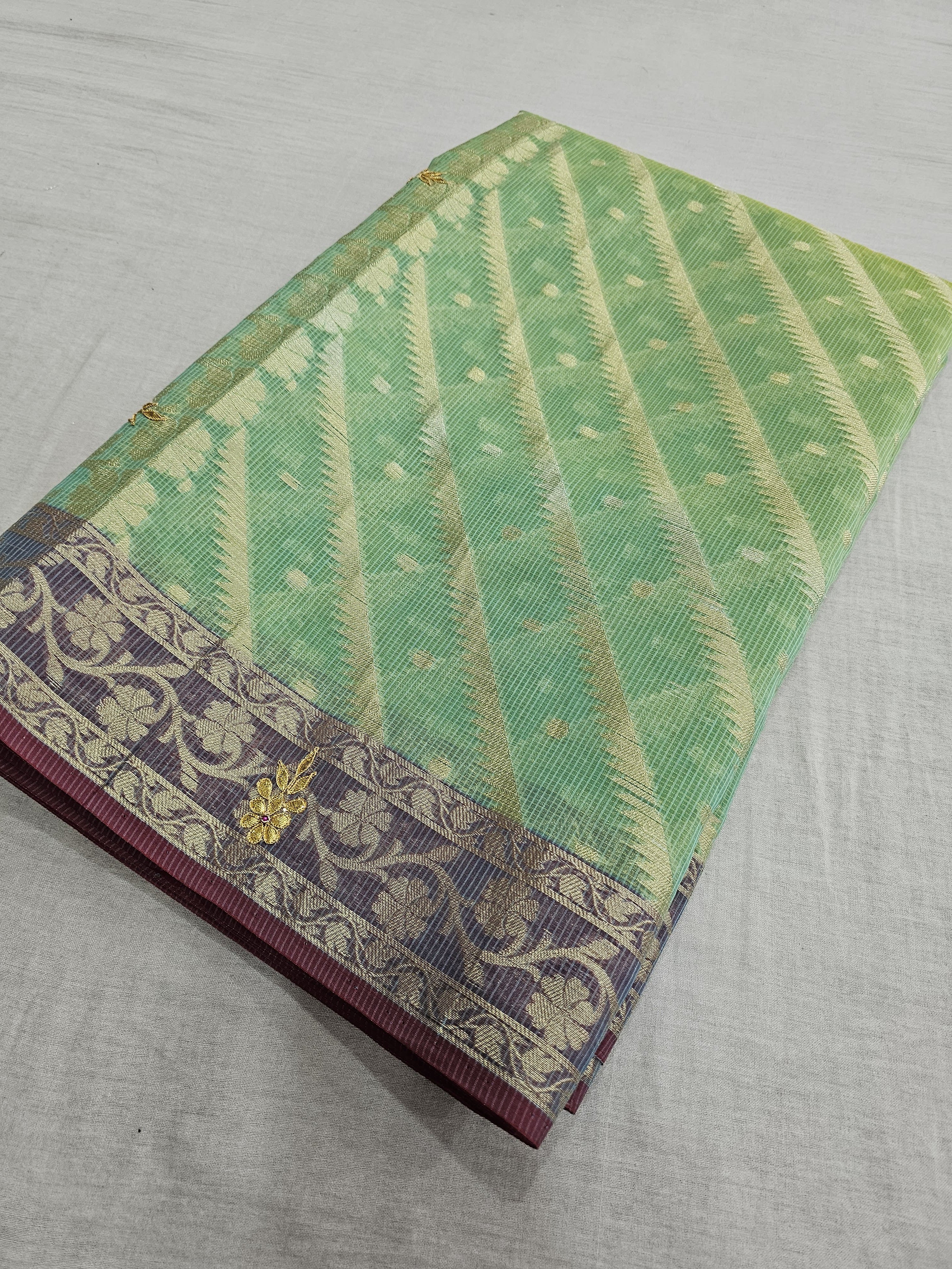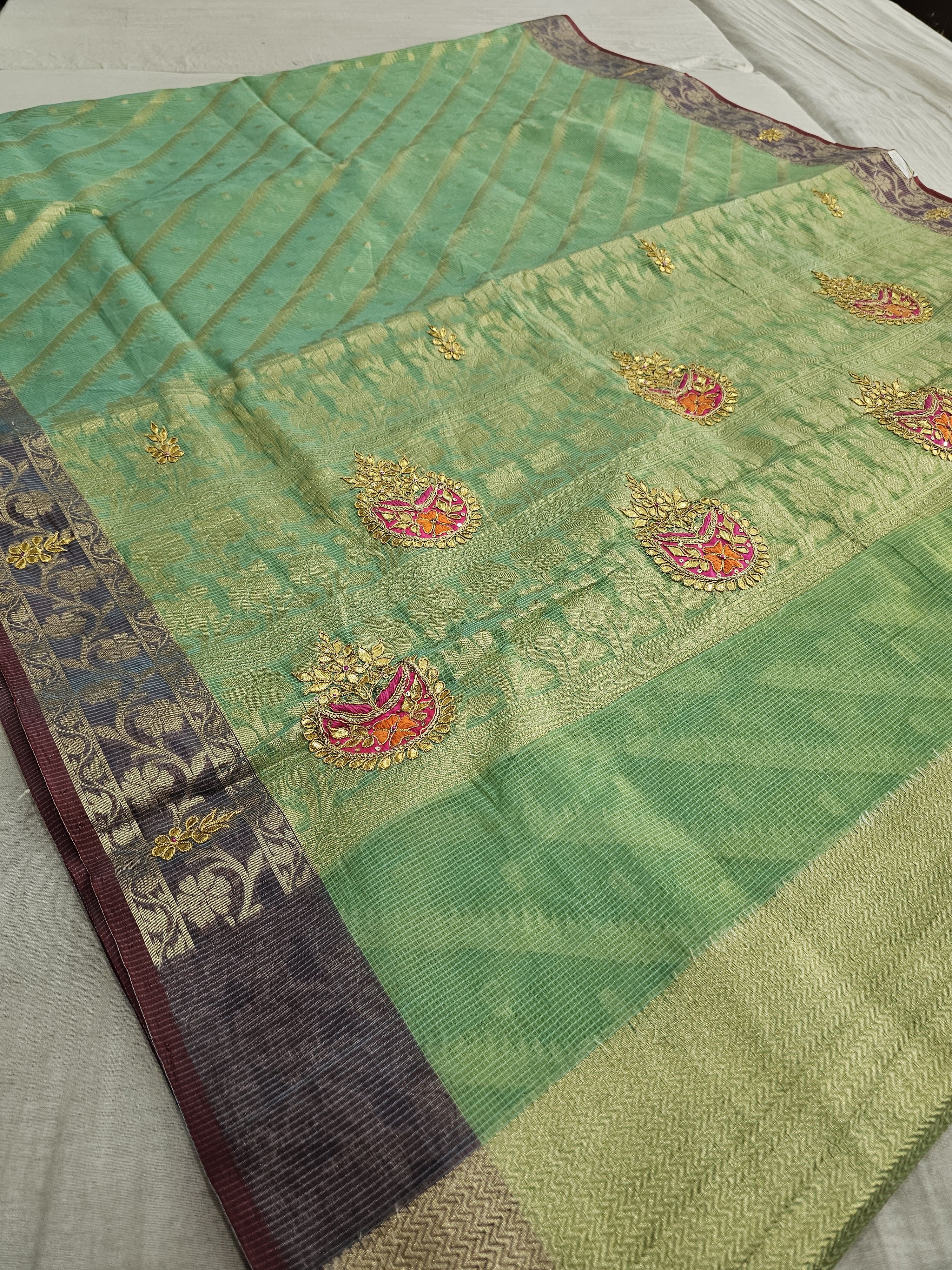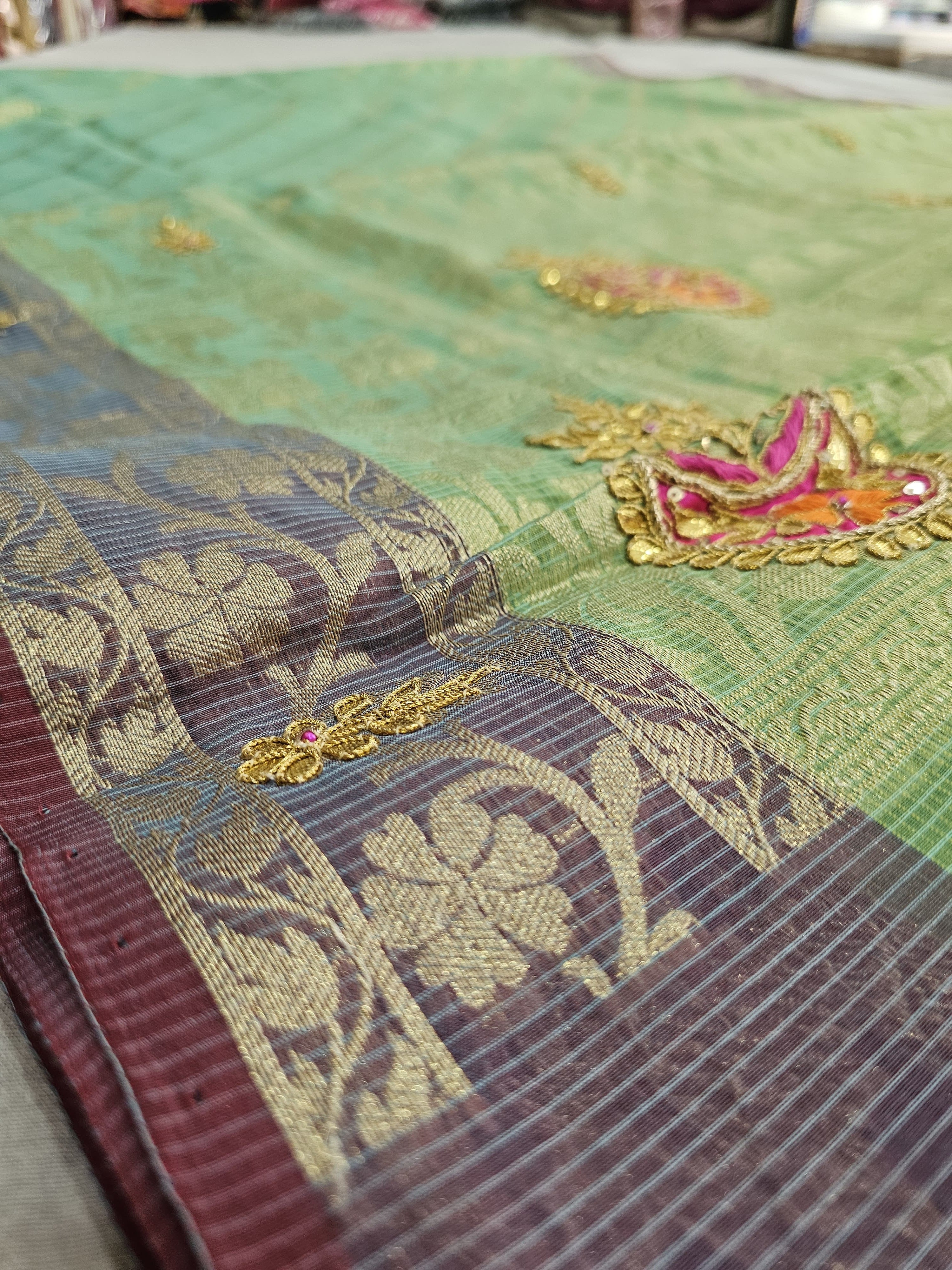 550006 बनारसी शुद्ध कॉटन साड़ी ज़री बुनाई और गोटा पट्टी वर्क के साथ