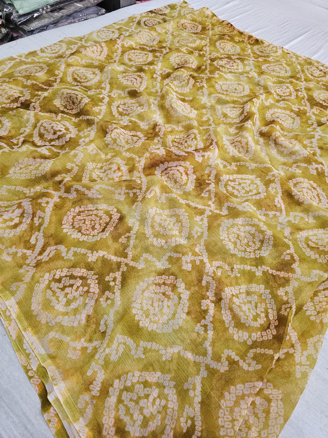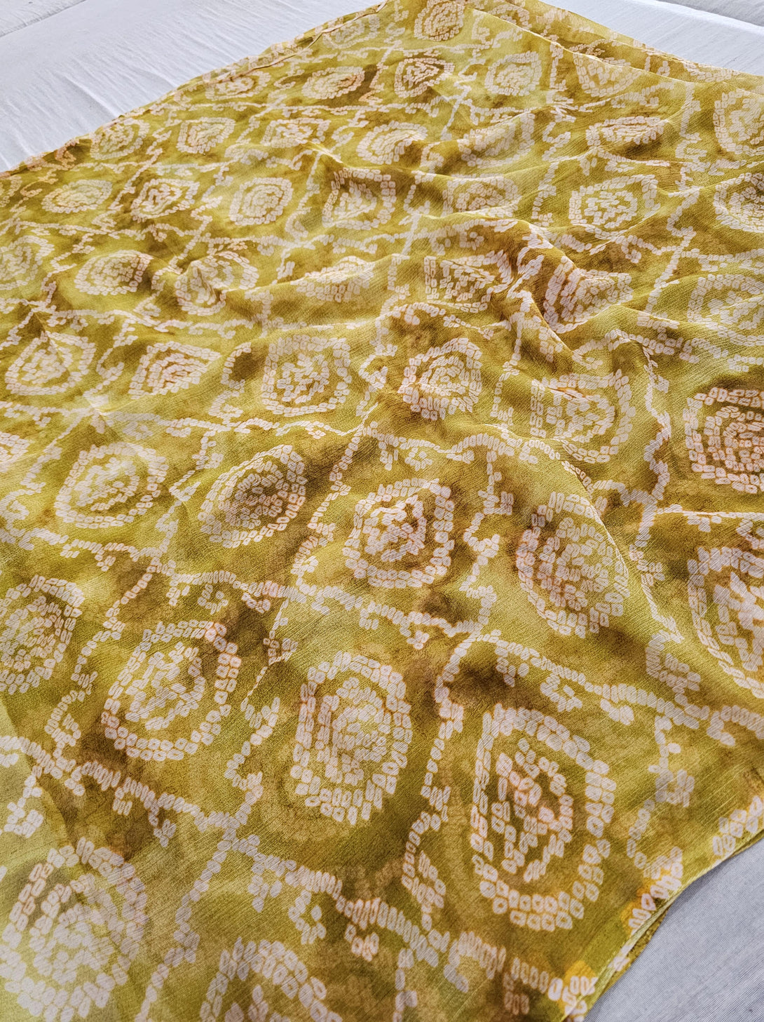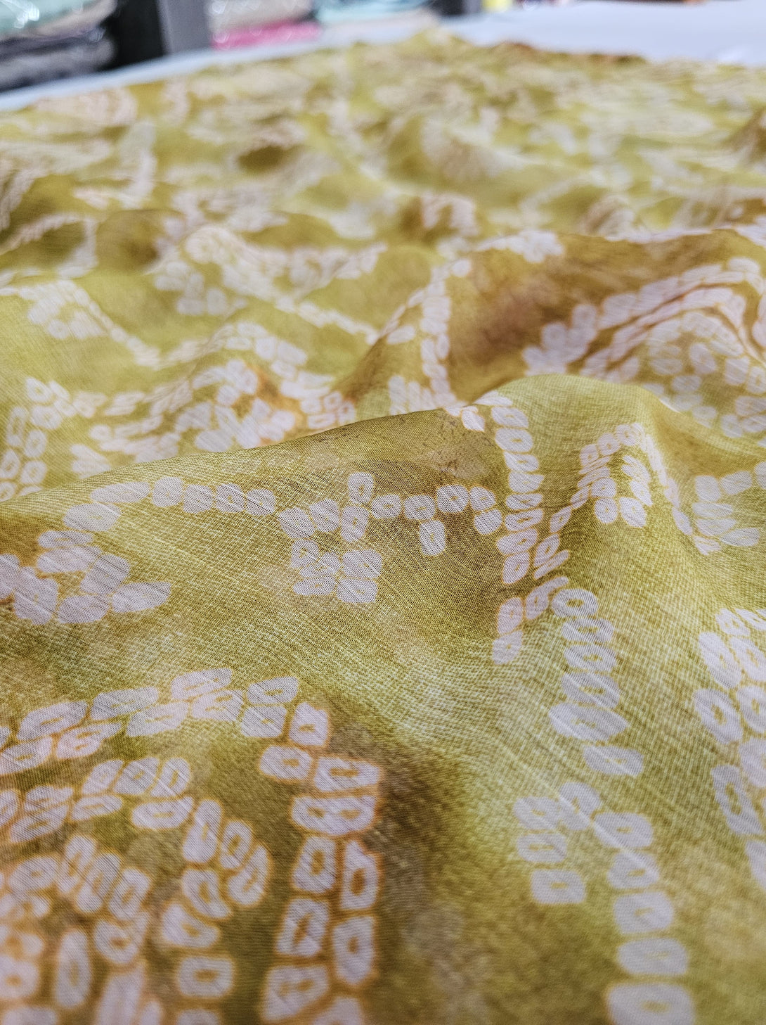 560002 सेमी शिफॉन बंधनी साड़ी - पीला