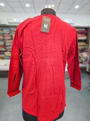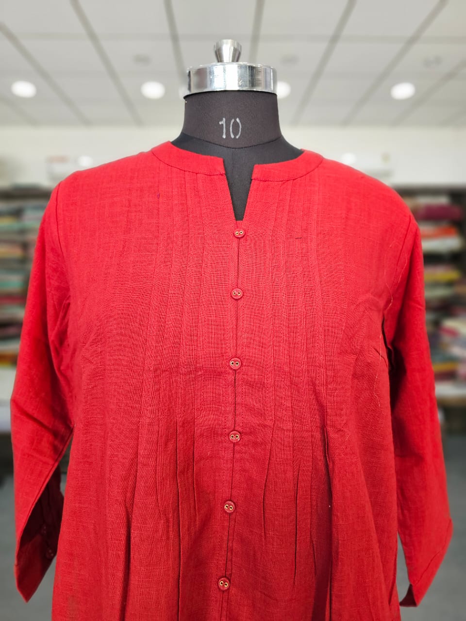 611003 सॉलिड कलर प्योर कॉटन पेप्लम स्टाइल शॉर्ट कुर्ती - मैरून