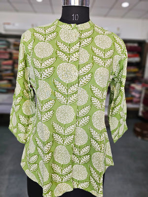 611005 फ्लावर प्रिंटेड सॉफ्ट रेयान कॉटन शॉर्ट कुर्ती