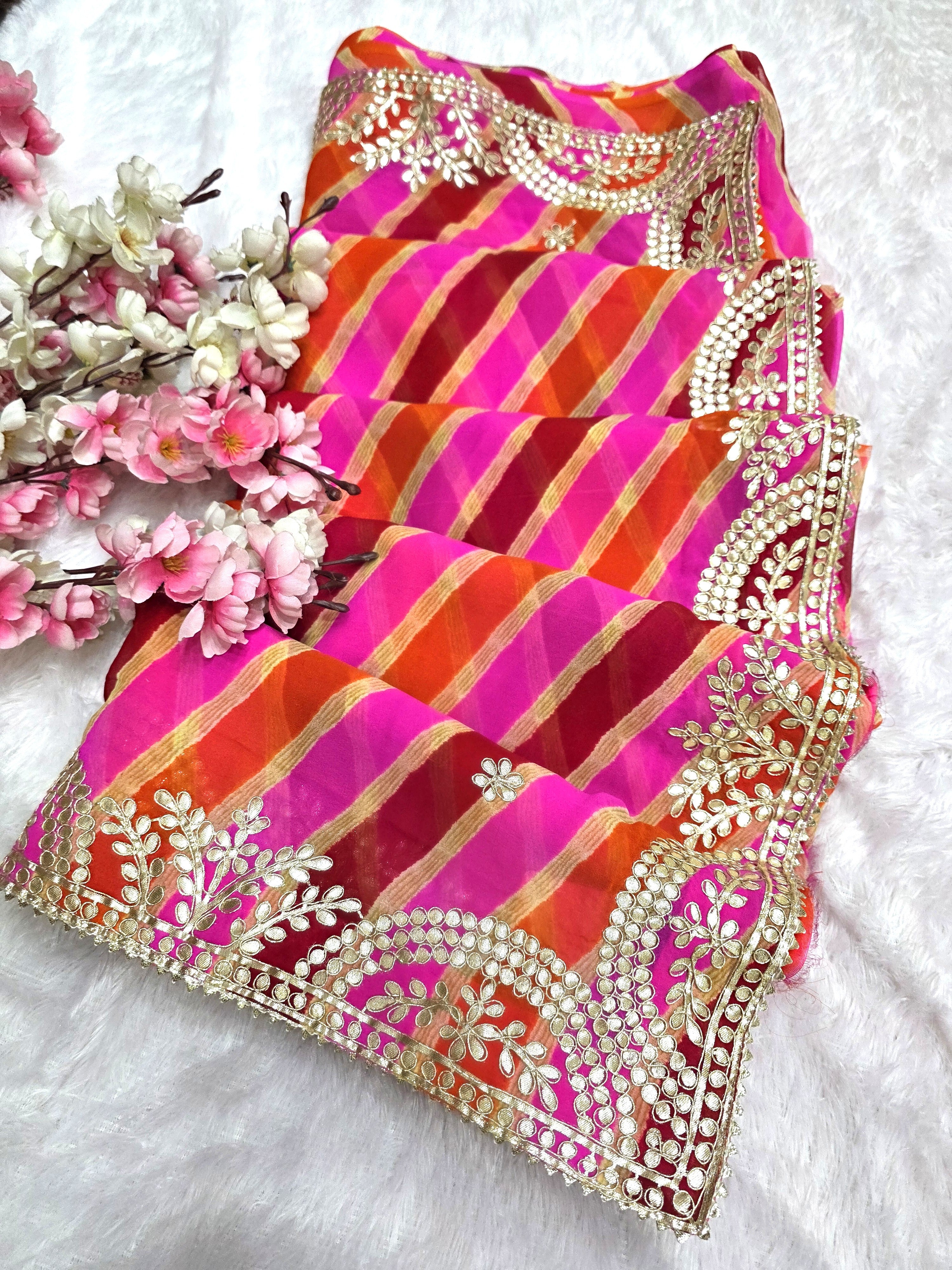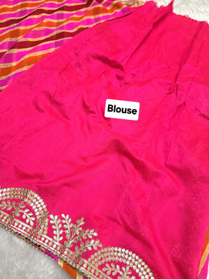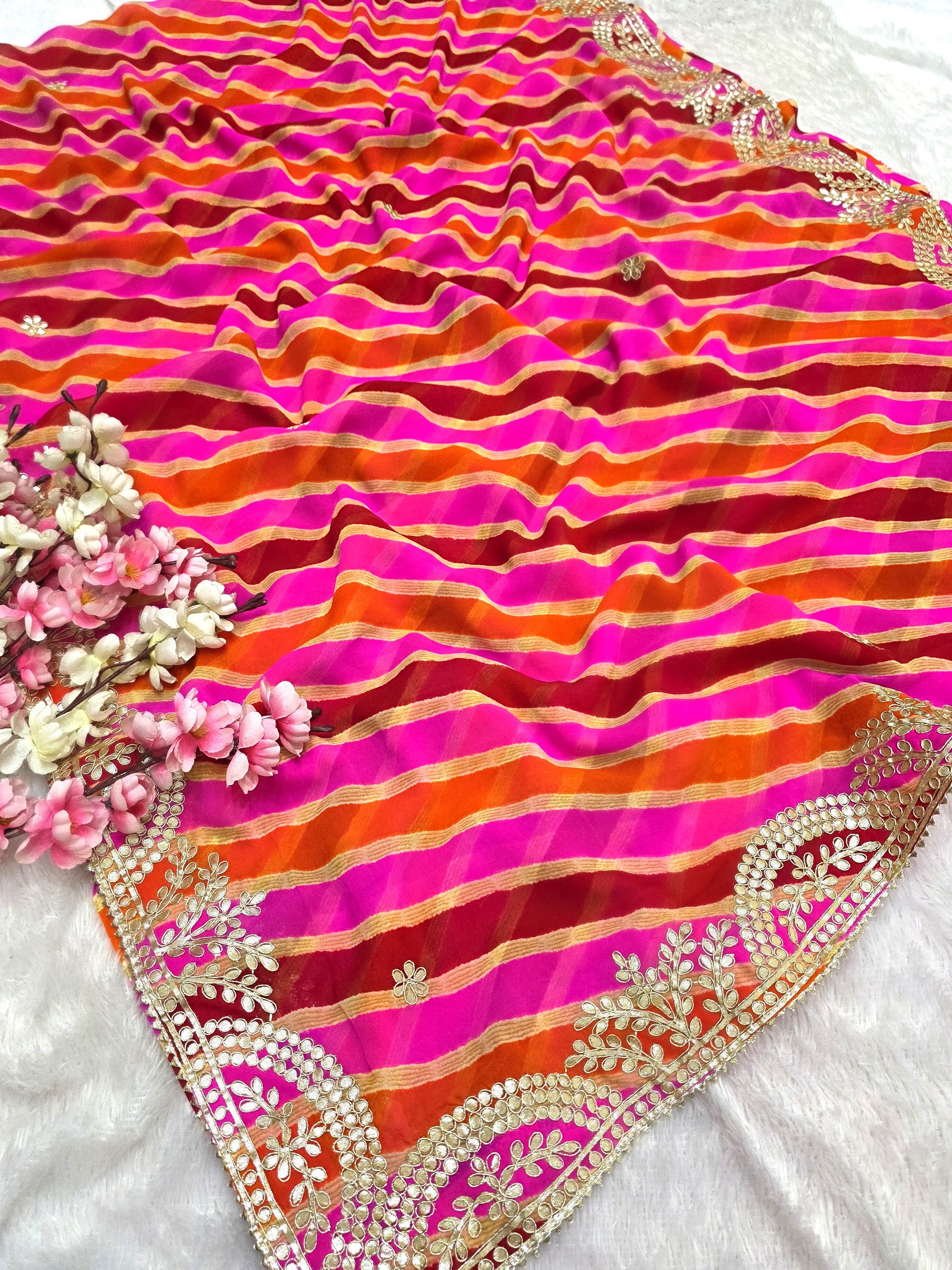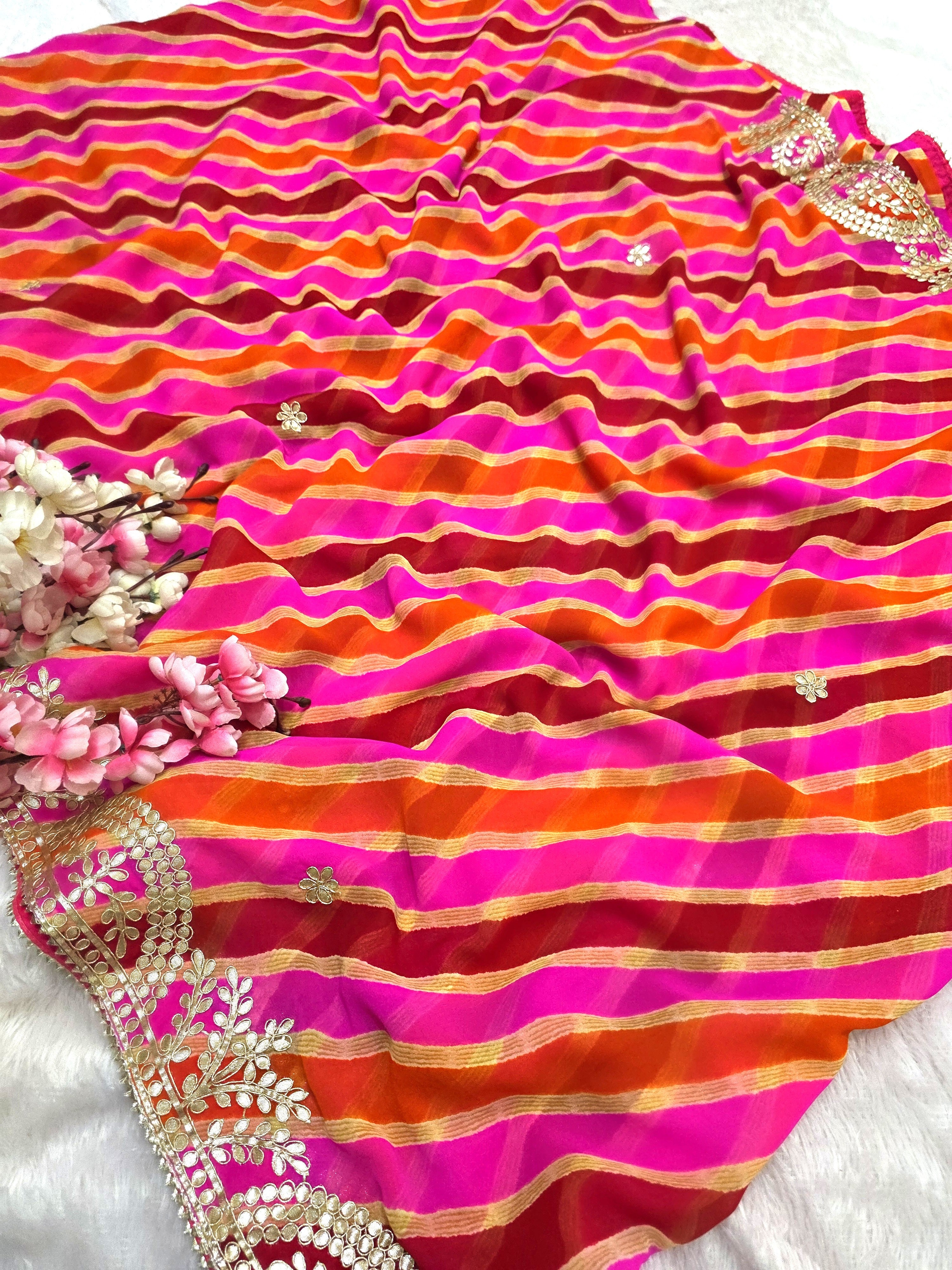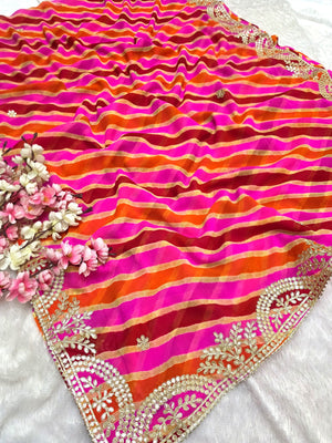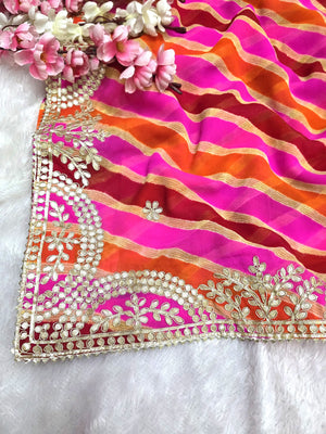 627008 गोटापट्टी वर्क लेहरिया साड़ी - गुलाबी