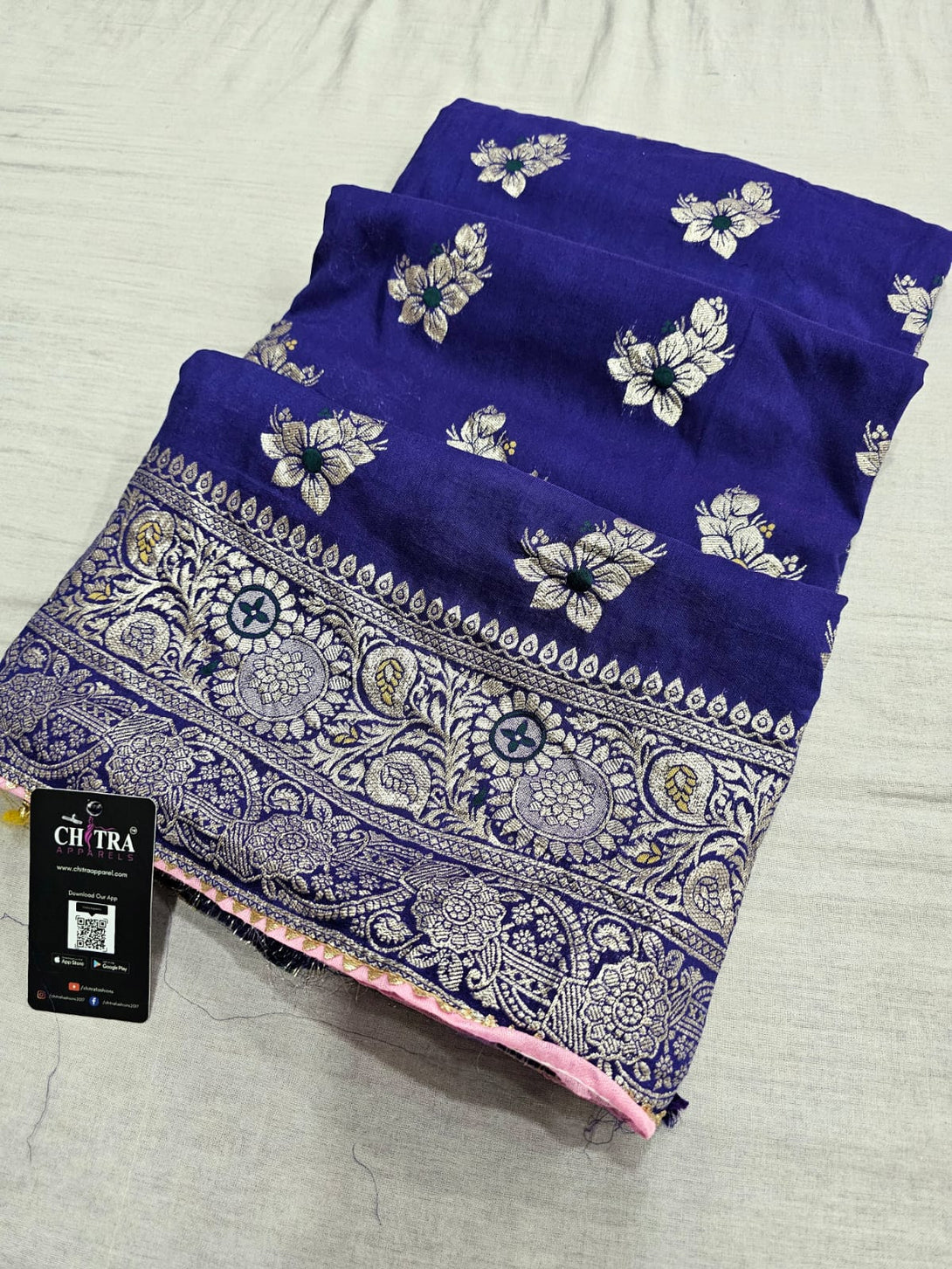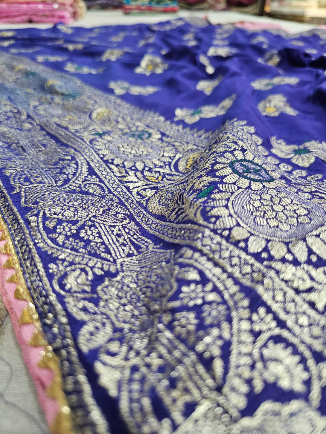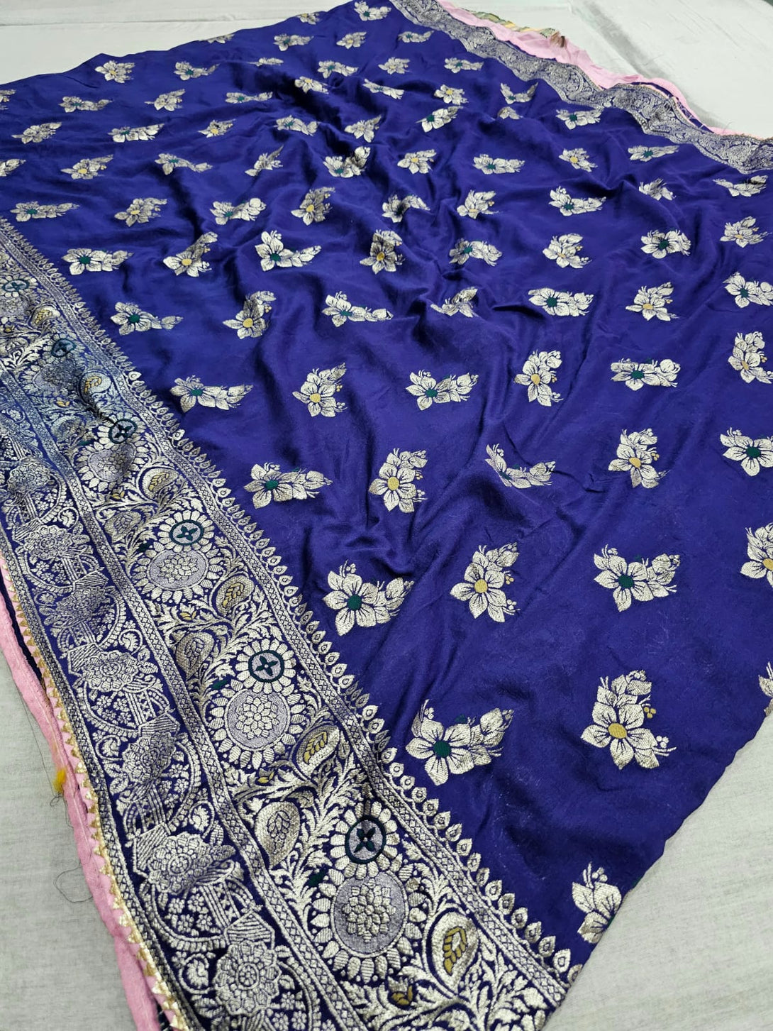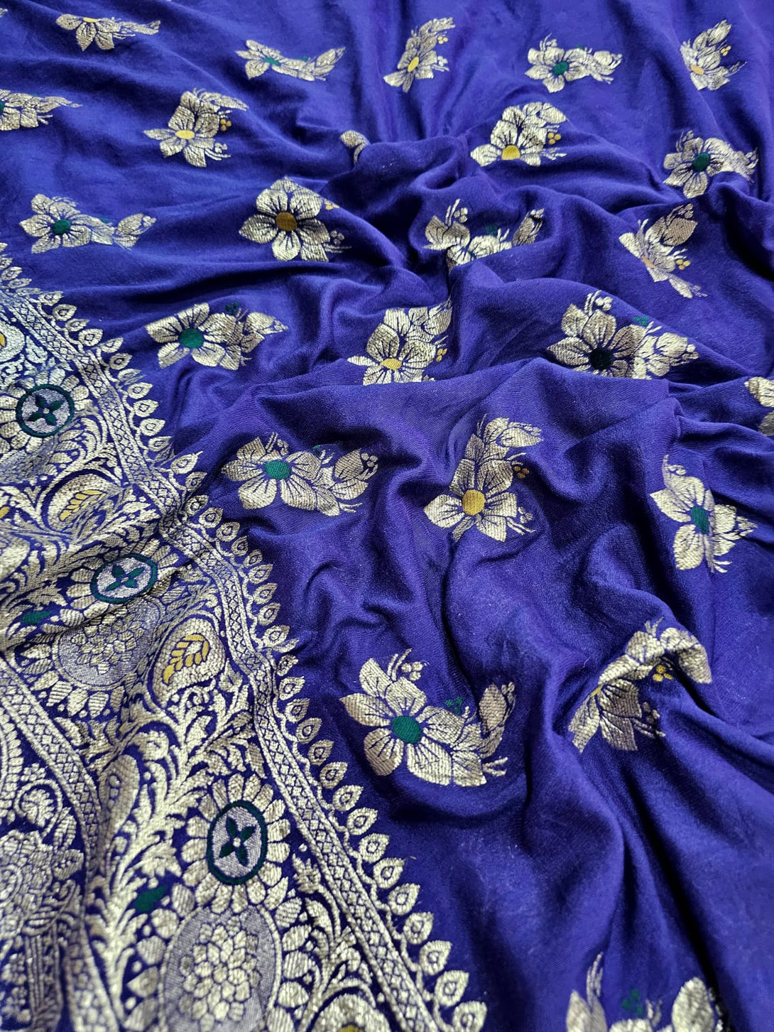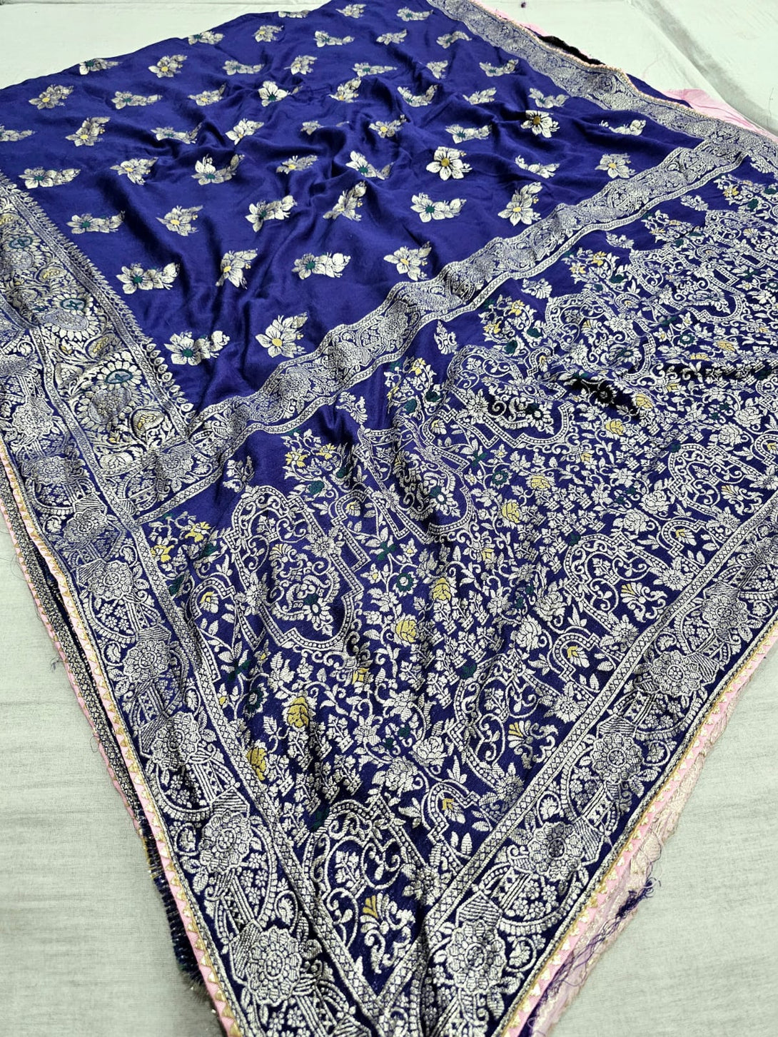 631002 ज़री बुनाई के साथ बनारसी मुलायम रेशम साड़ी - बैंगनी