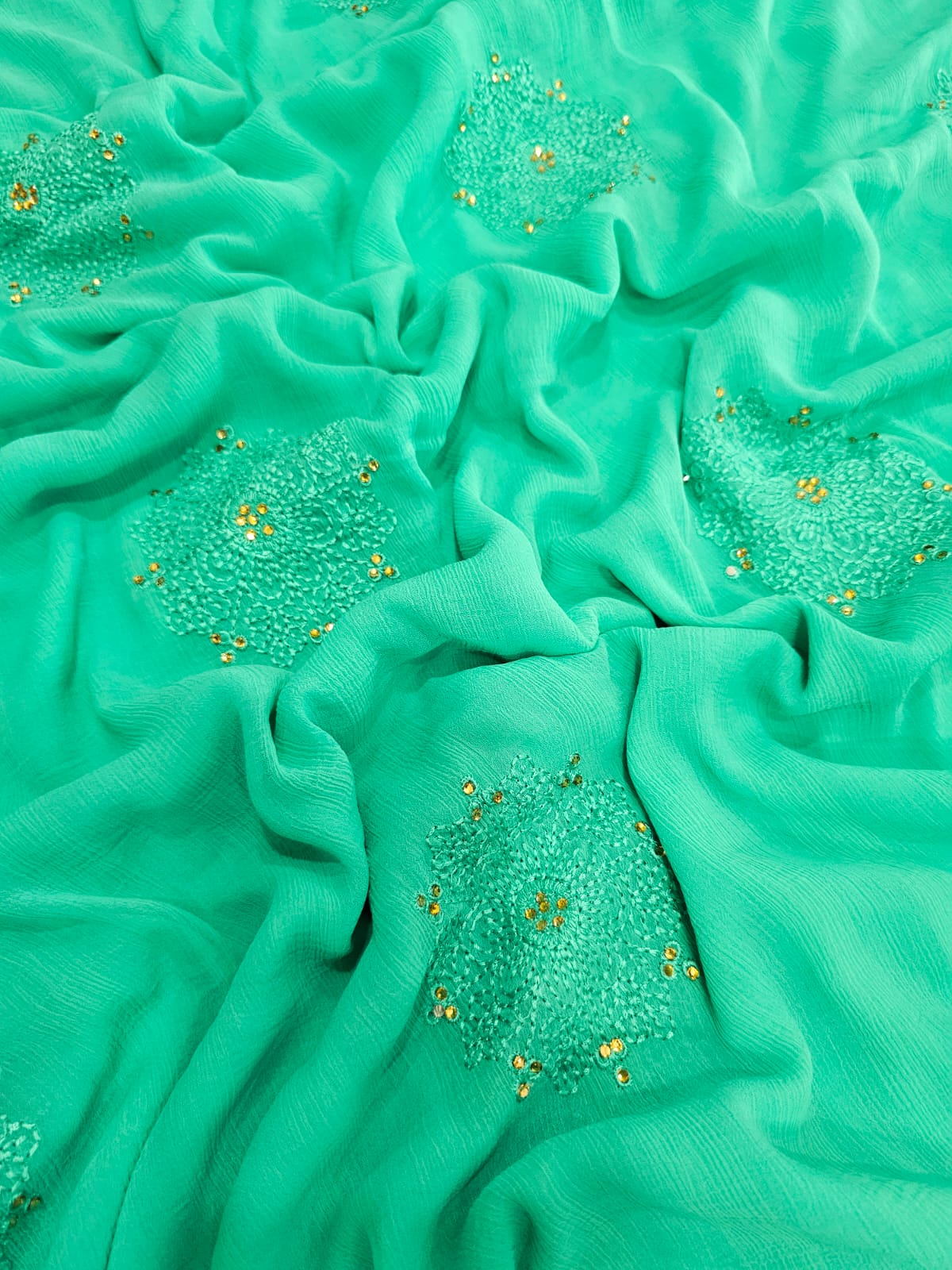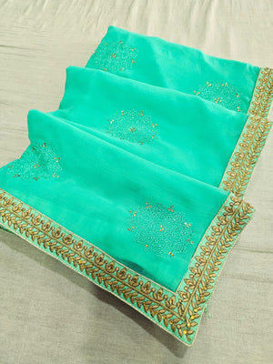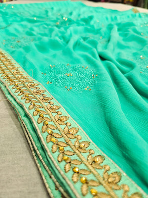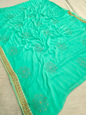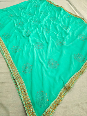 646002 कढ़ाई के साथ भारी शिफॉन पार्टी वियर साड़ी 504003