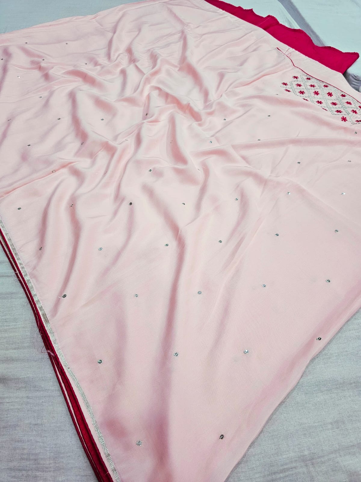 647009 एक्सक्लूसिव डिज़ाइनर पार्टी वियर साड़ी - गुलाबी