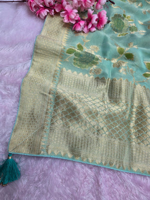 6472 Designer Party Wear Pure Tissue Silk Fancy Saree with Hand Paint