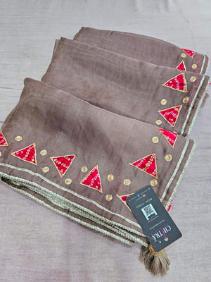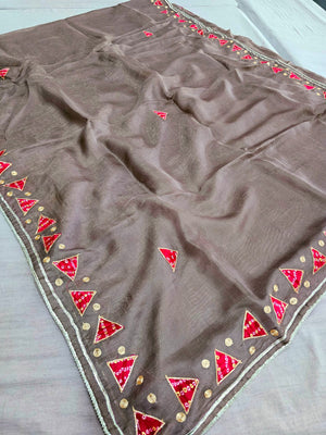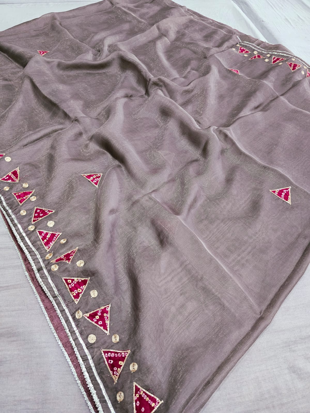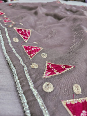 665005 फैंसी डिजाइनर सेमी पार्टी वियर साड़ी बांधनी ब्लाउज के साथ - भूरा