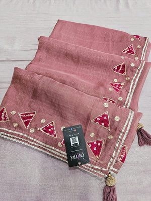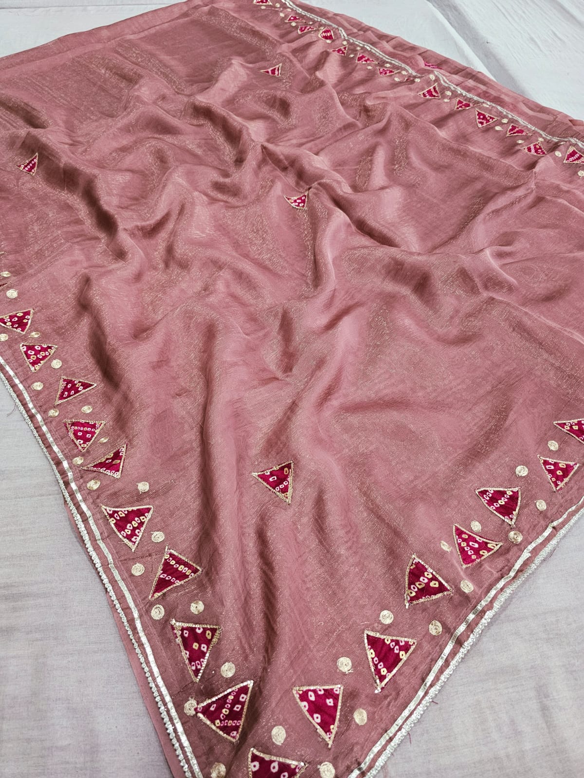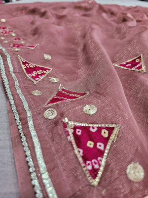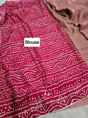 665005 फैंसी डिजाइनर सेमी पार्टी वियर साड़ी बांधनी ब्लाउज के साथ - डार्क पीच