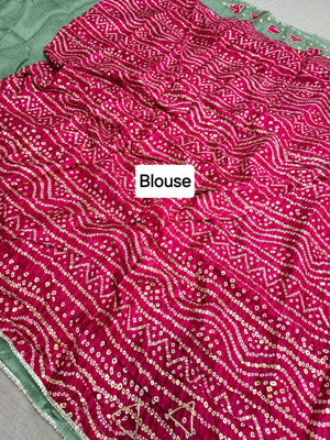 665005 फैंसी डिजाइनर सेमी पार्टी वियर साड़ी बांधनी ब्लाउज के साथ - हरा