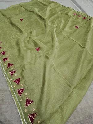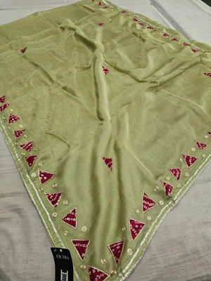 665005 फैंसी डिजाइनर सेमी पार्टी वियर साड़ी बांधनी ब्लाउज के साथ - तोता हरा