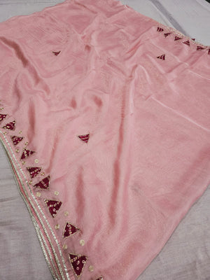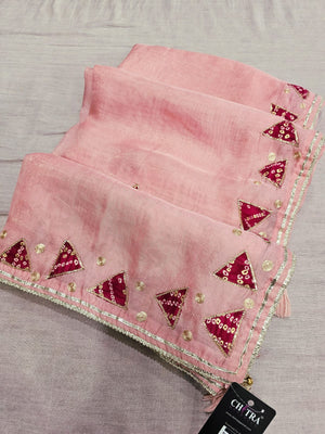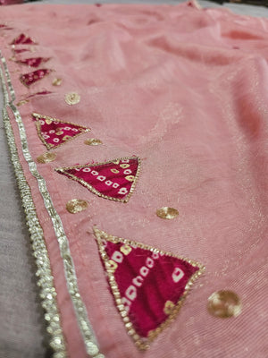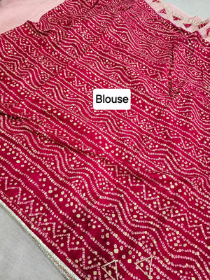 665005 फैंसी डिजाइनर सेमी पार्टी वियर साड़ी बांधनी ब्लाउज के साथ - गुलाबी