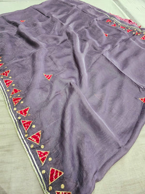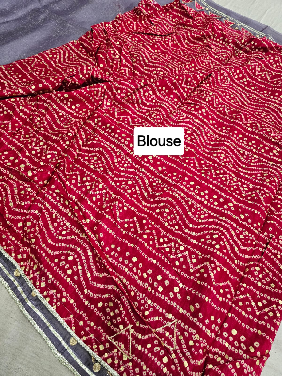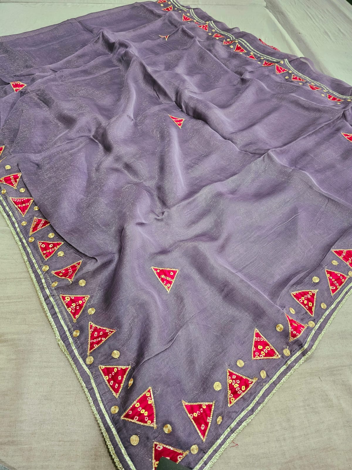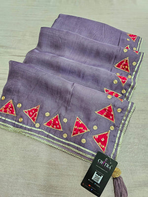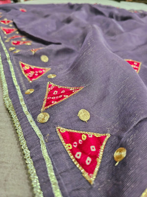 665005 फैंसी डिजाइनर सेमी पार्टी वियर साड़ी बांधनी ब्लाउज के साथ - बैंगनी