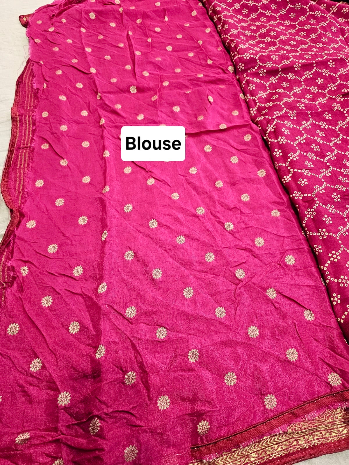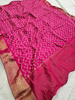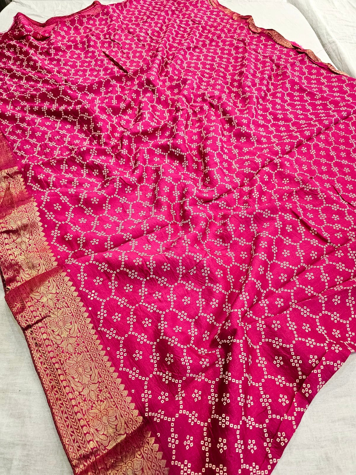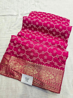 711006 Designer Bandhani Saree with Banarasi Pallu and Border - Rani