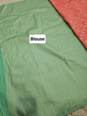123003 शुद्ध कांजीवरम सिल्क साड़ी गुलाबी और एक्वा ग्रीन रंग पूरे ज़री और समृद्ध ज़री बॉर्डर के साथ