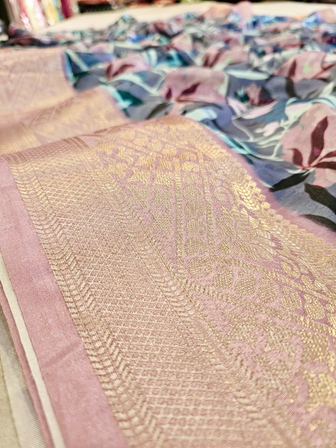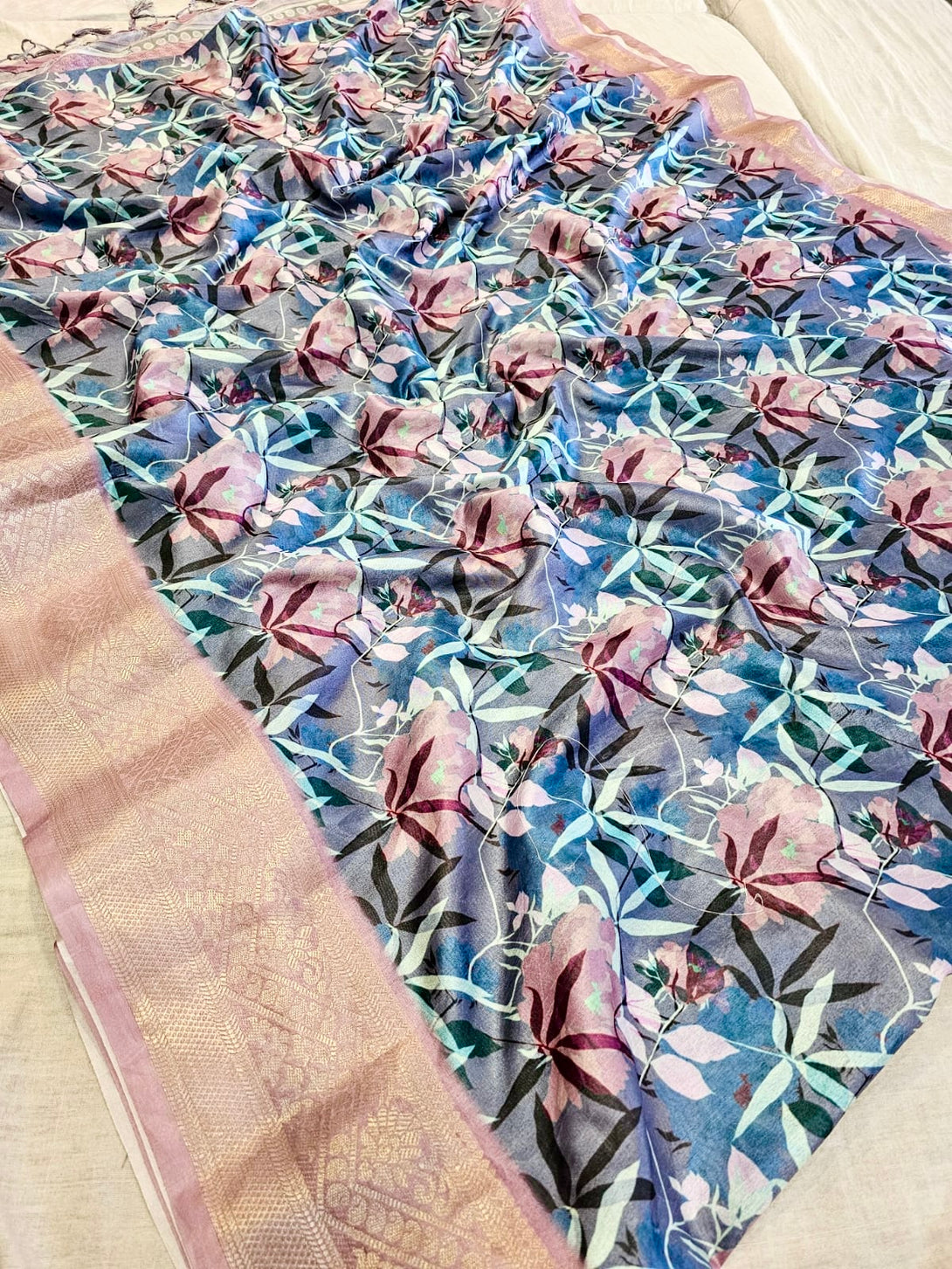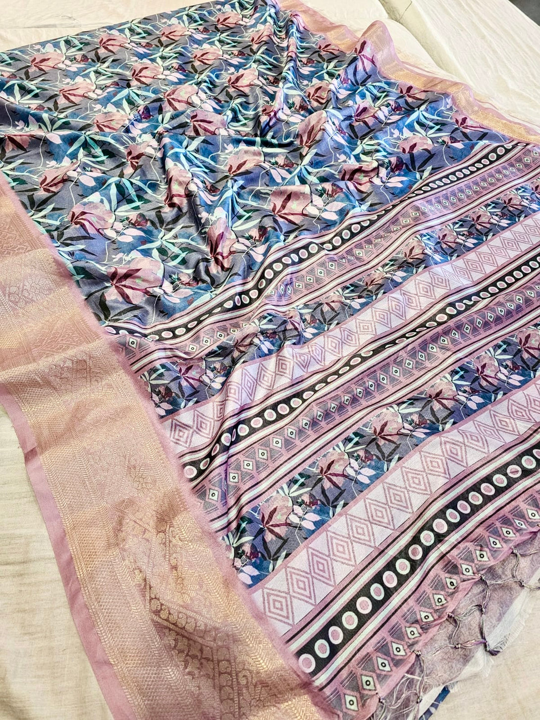 735008 Digital Printed Semi Sik Saree with Heavy Zari Border
