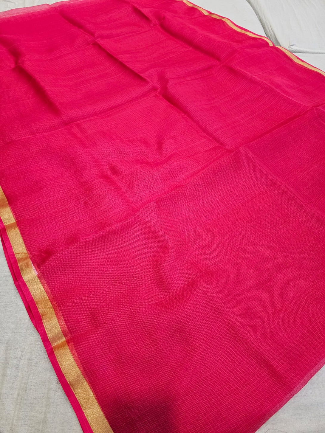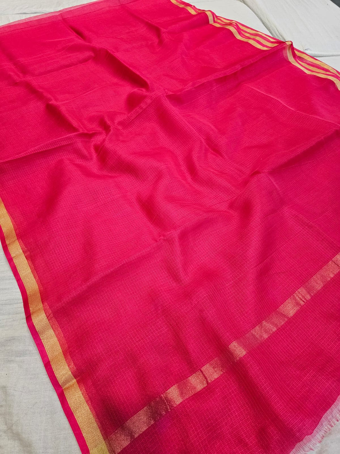 738009 Pure Kota Doria Silk Plain Saree with 1" Zari Border