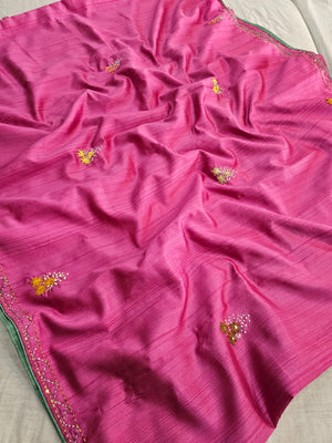 शुद्ध टसर सिल्क हाथ से बनी लेहरिया साड़ी प्रीमियम गोटापट्टी वर्क के साथ - 8837