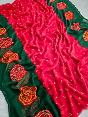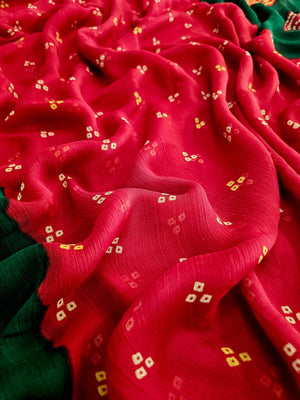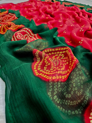 704002 सॉफ्ट शिफॉन रजवाड़ी बंधनी प्रिंट साड़ी - रानी