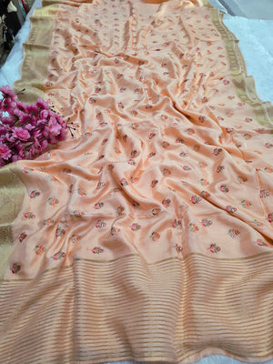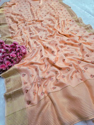 नोट: कैमरा और स्क्रीन में रंग प्रजनन के कारण साड़ी में हल्का रंग भिन्नता हो सकती है।