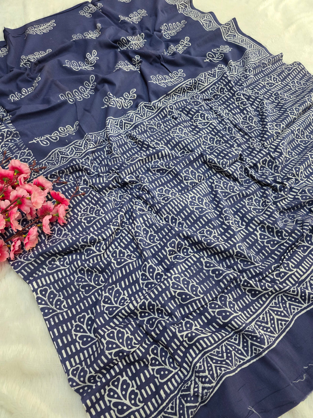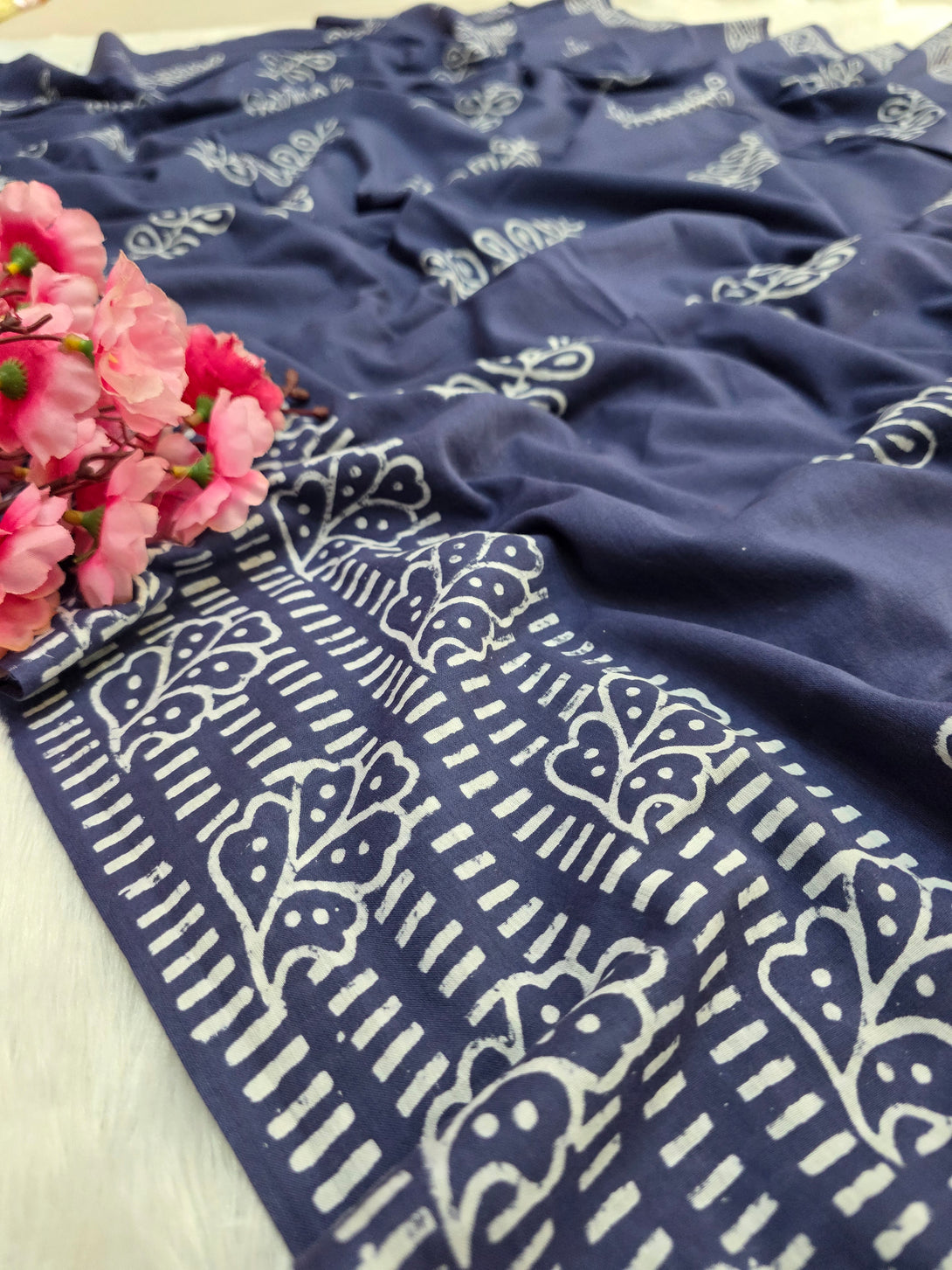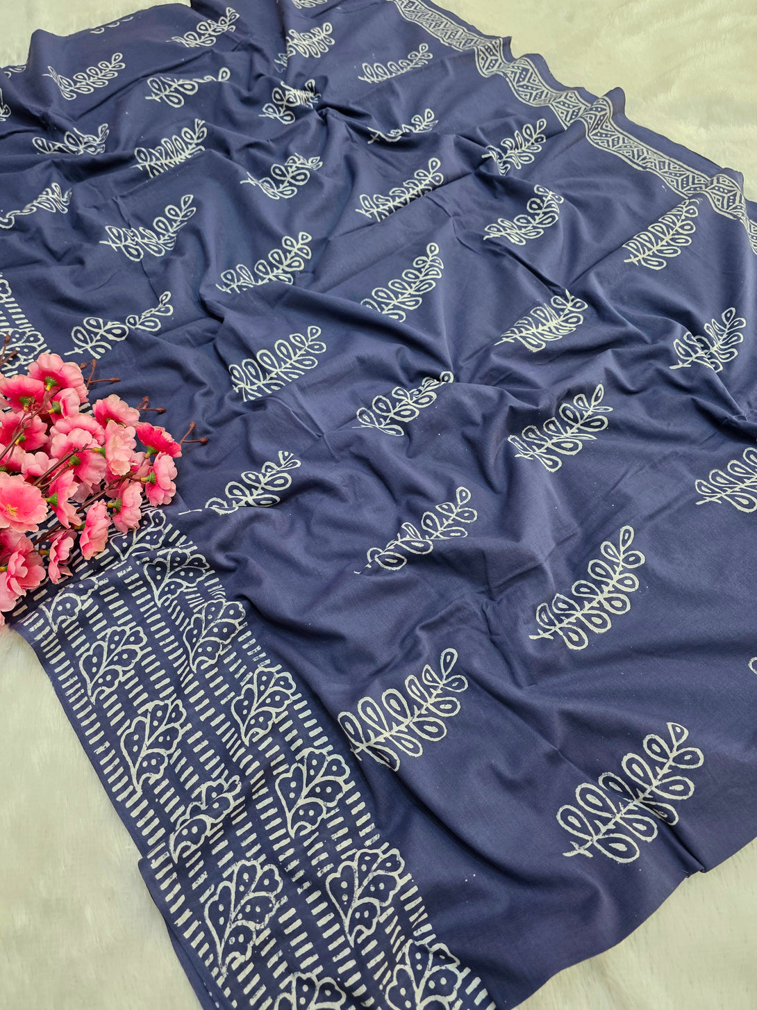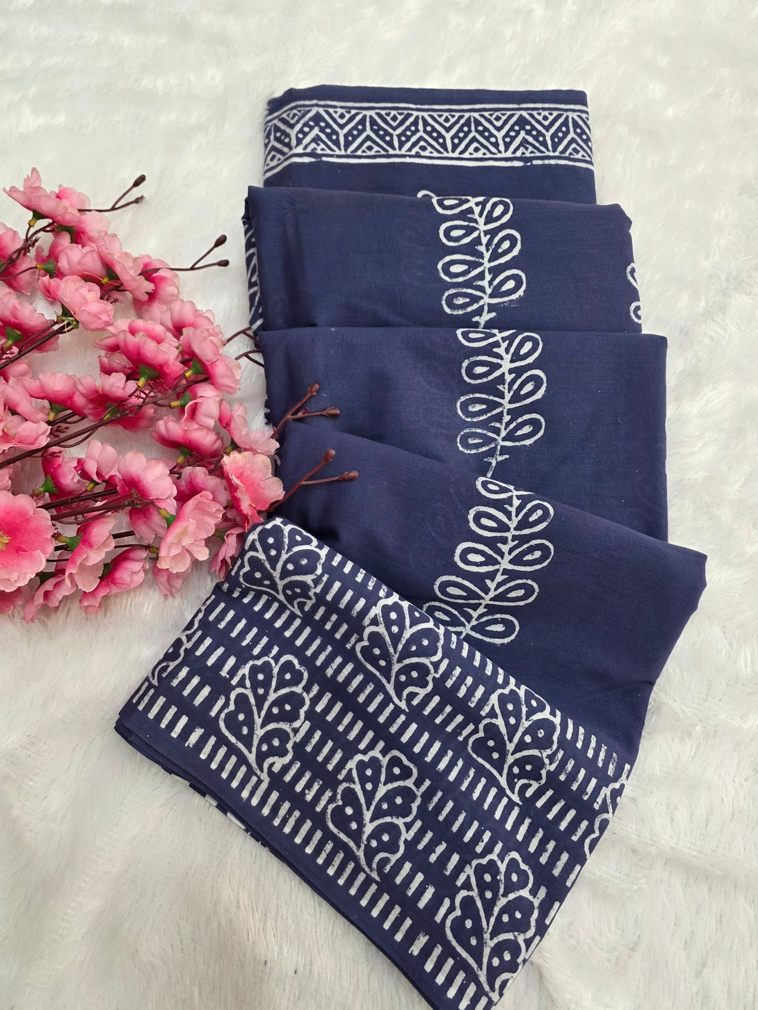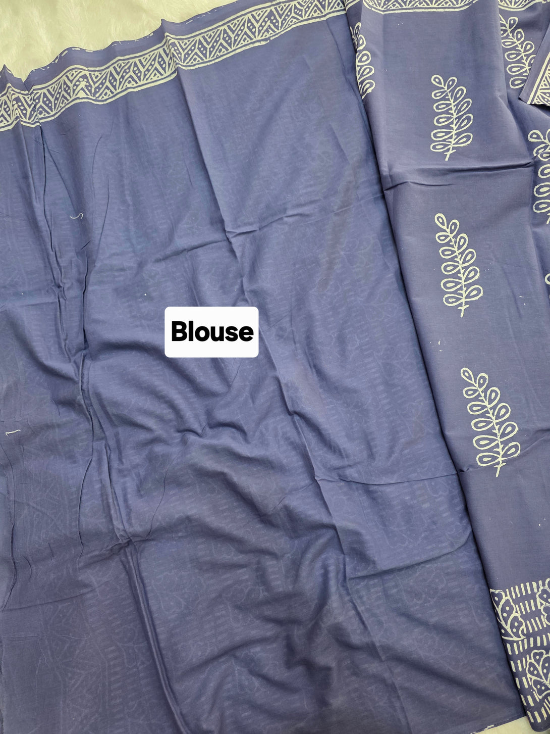601002 शुद्ध मुल कॉटन हैंडब्लॉक प्रिंटेड साड़ी