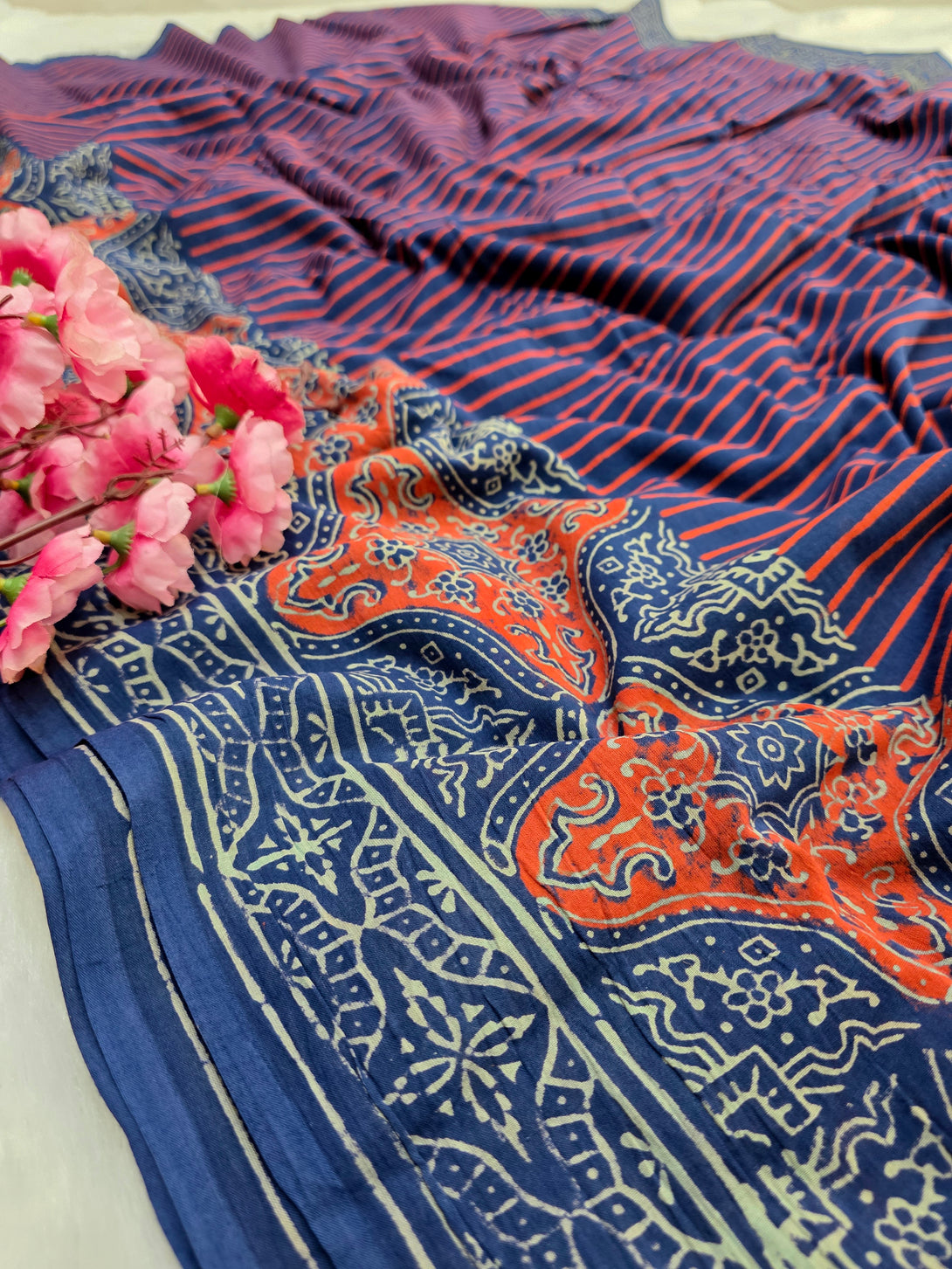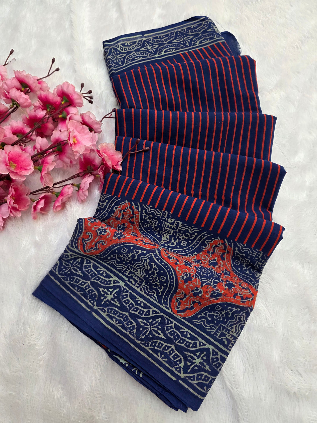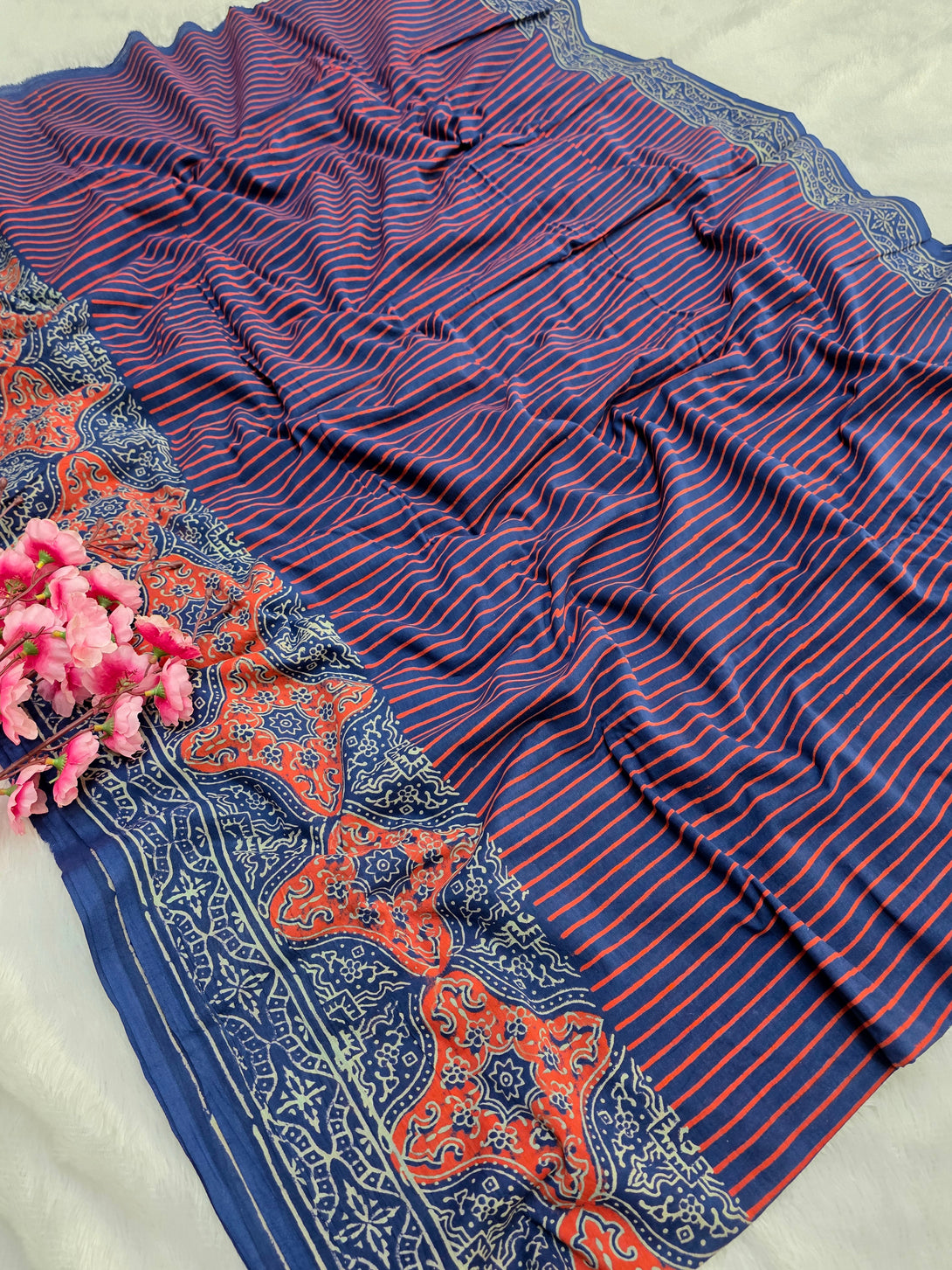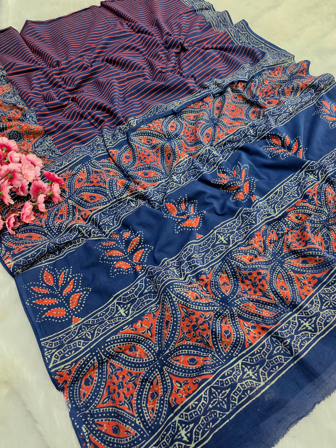 नोट: कैमरा और स्क्रीन में रंग प्रजनन के कारण साड़ी में हल्का रंग भिन्नता हो सकती है।