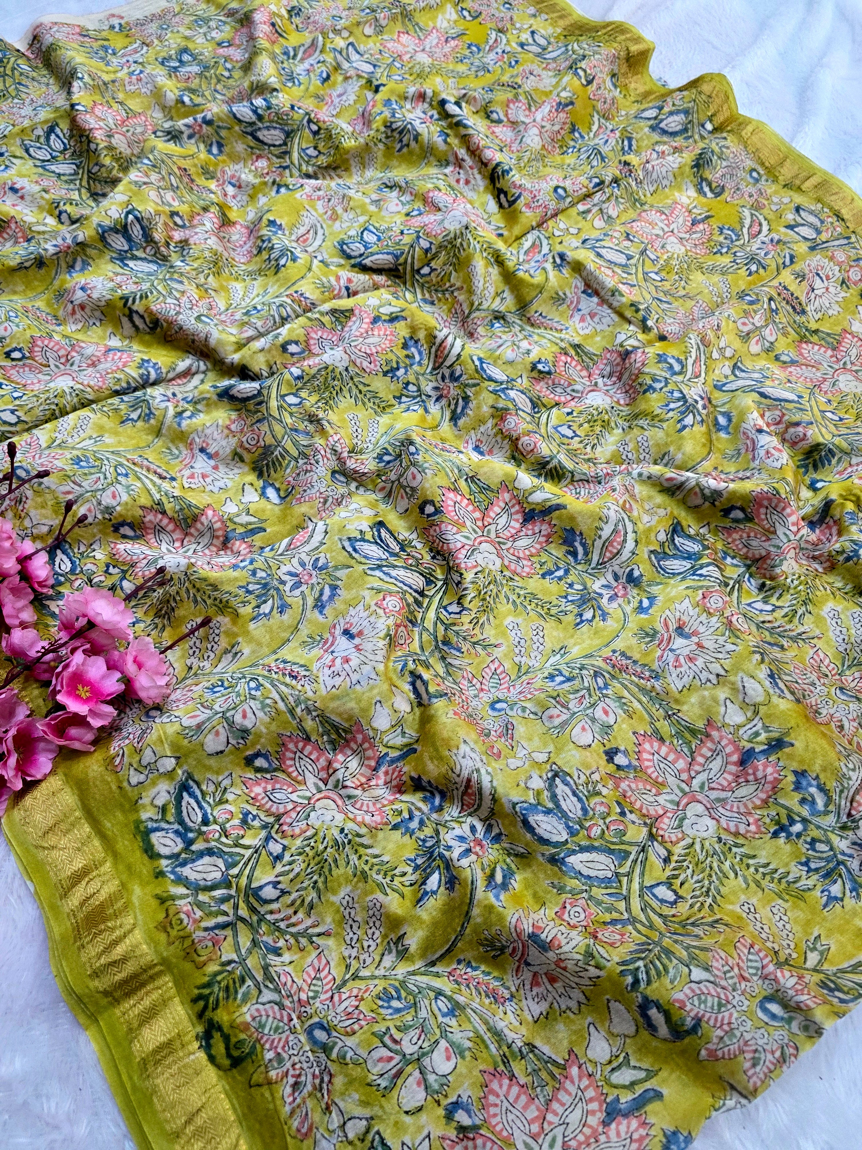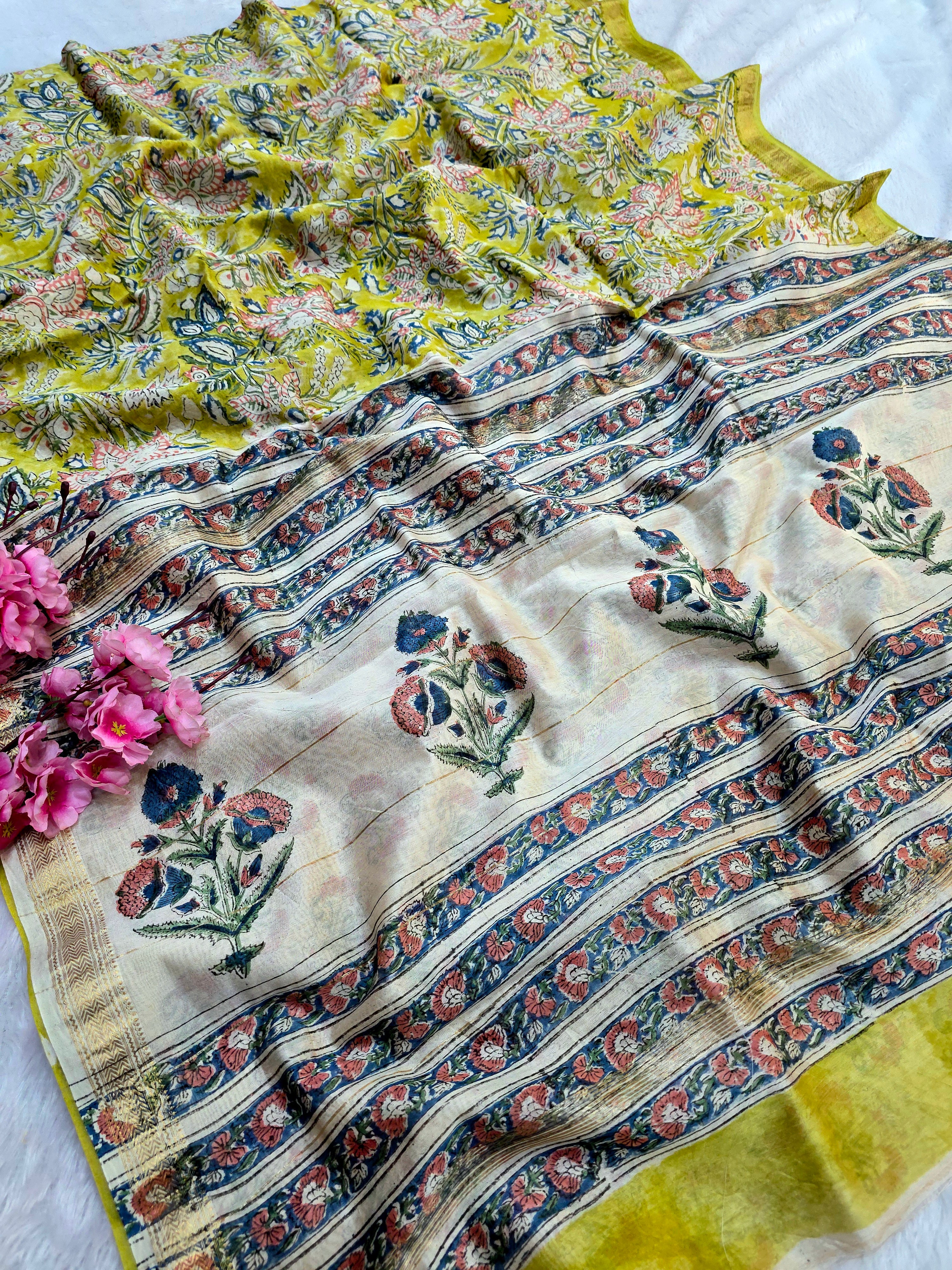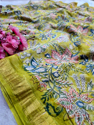 578010 शुद्ध माहेश्वरी कॉटन सिल्क हैंडब्लॉक प्रिंटेड साड़ी