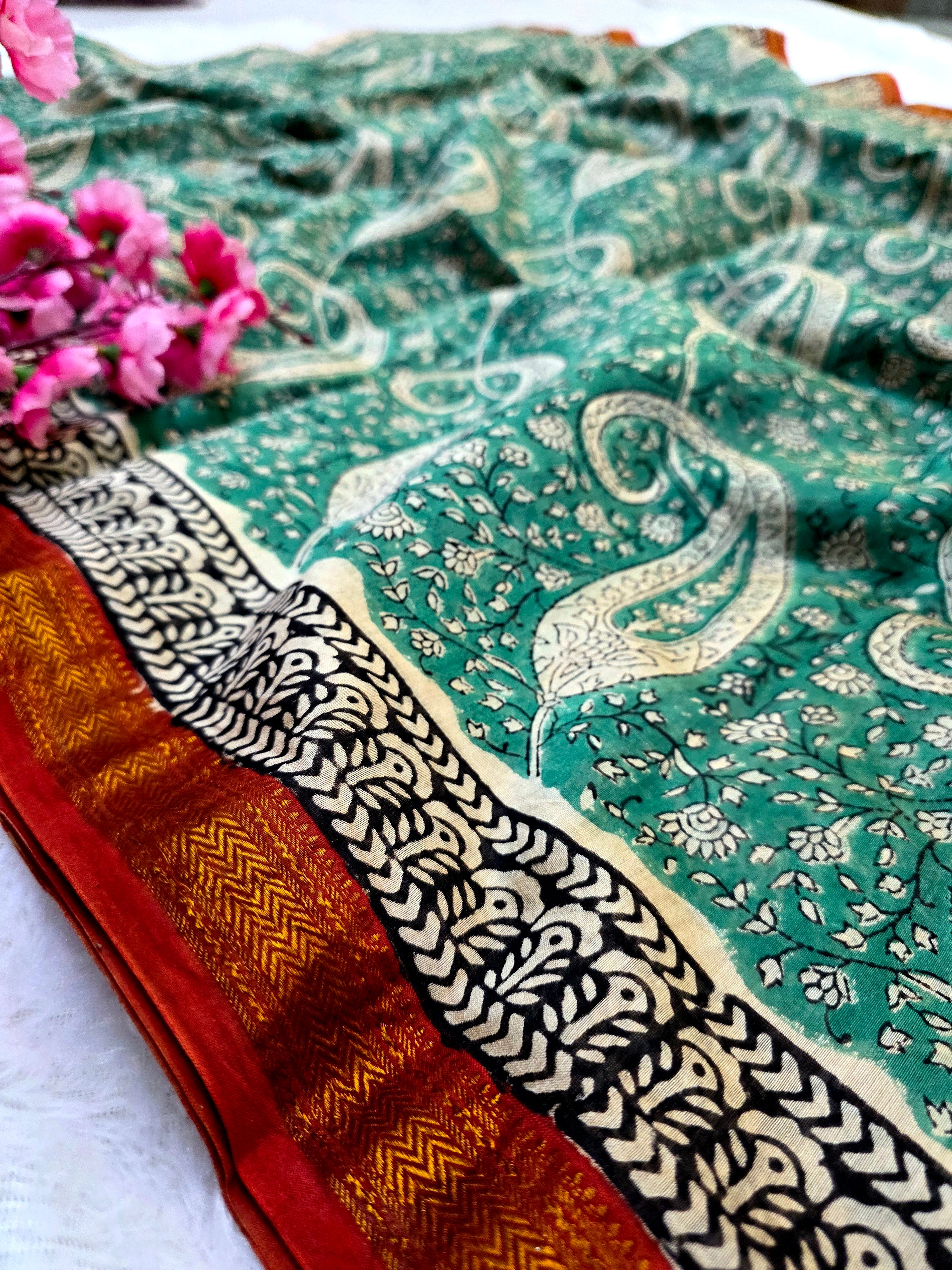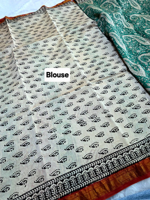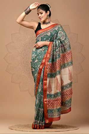 578010 शुद्ध माहेश्वरी कॉटन सिल्क हैंडब्लॉक प्रिंटेड साड़ी
