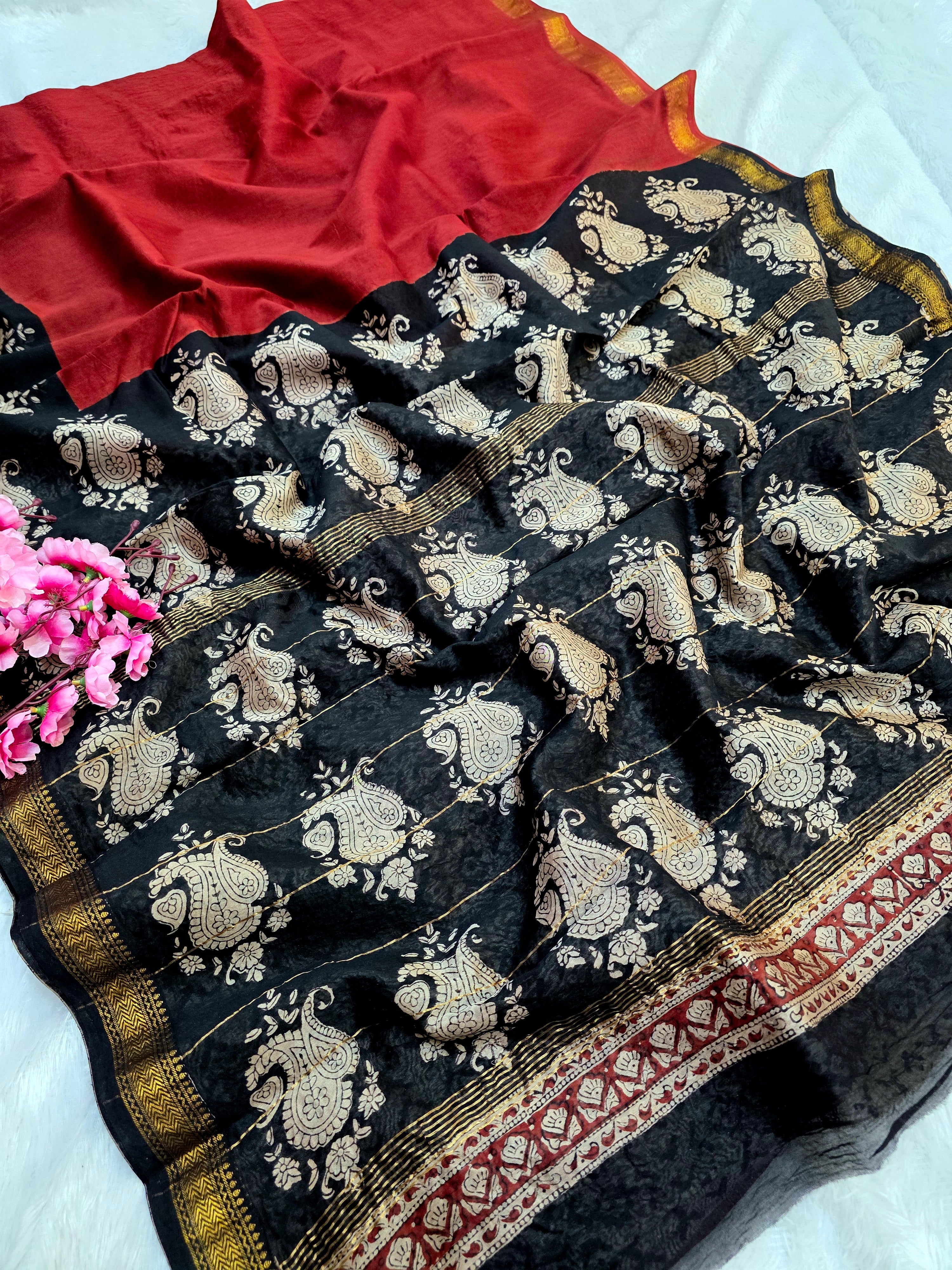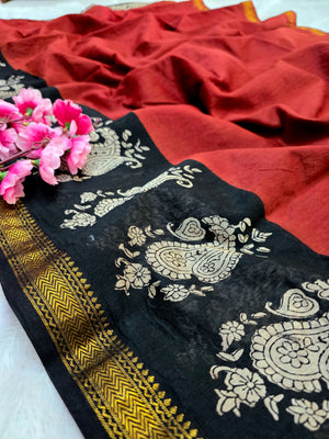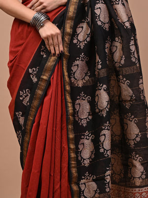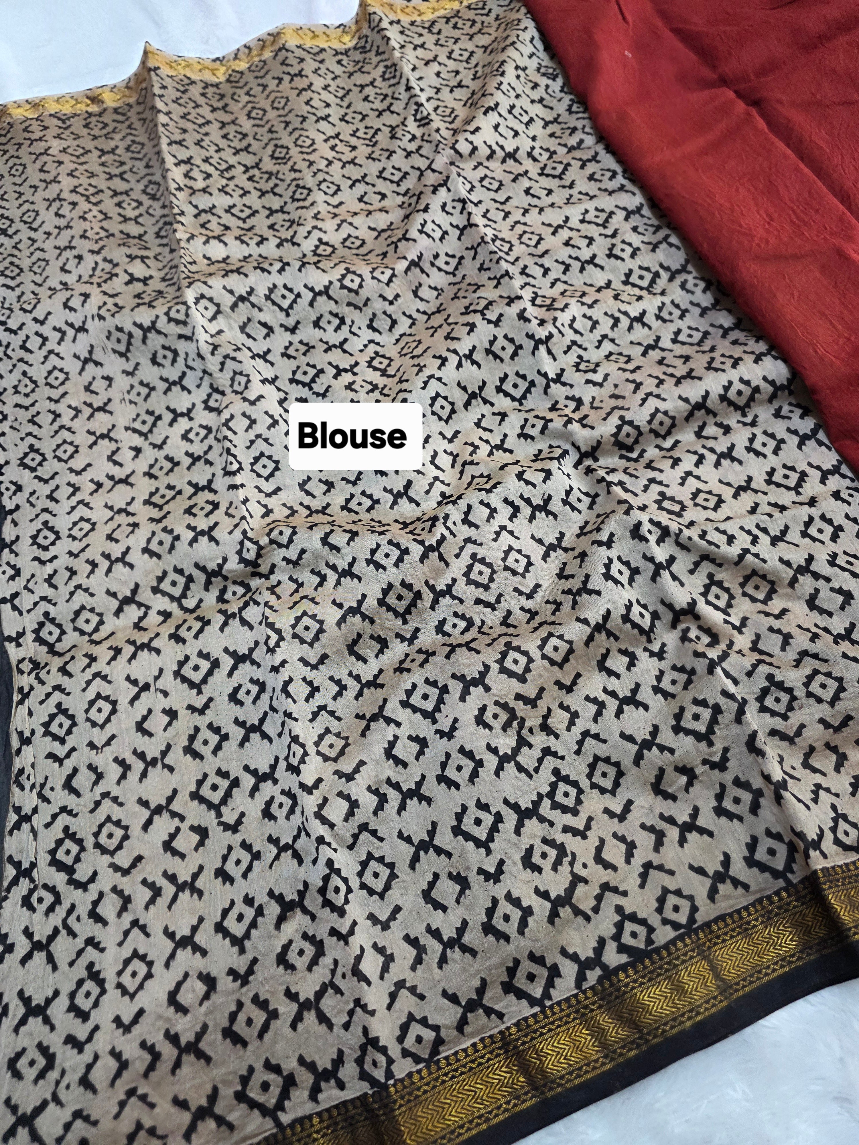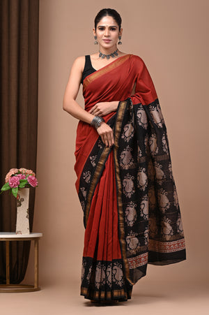 578010 शुद्ध माहेश्वरी कॉटन सिल्क हैंडब्लॉक प्रिंटेड साड़ी