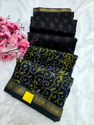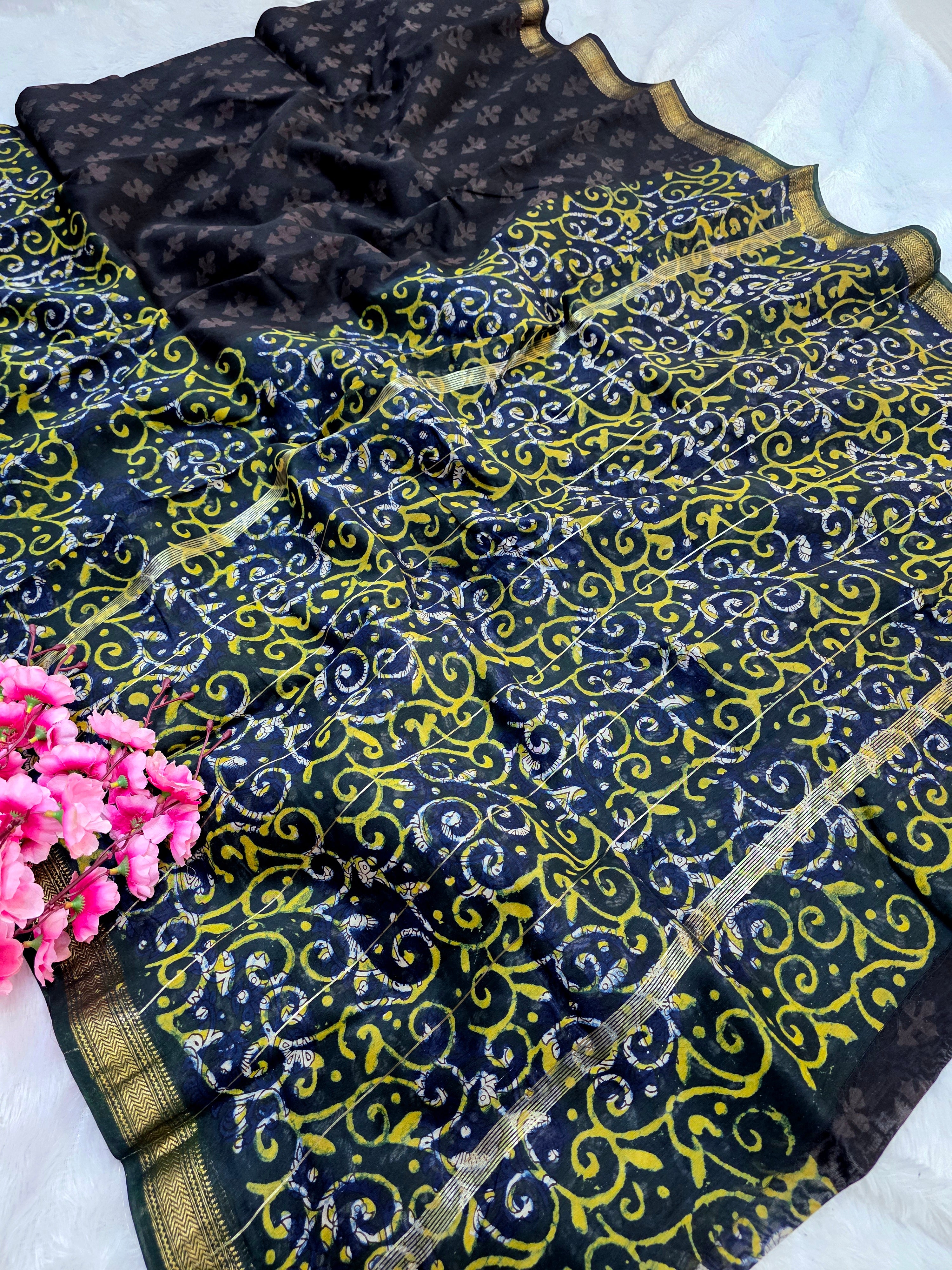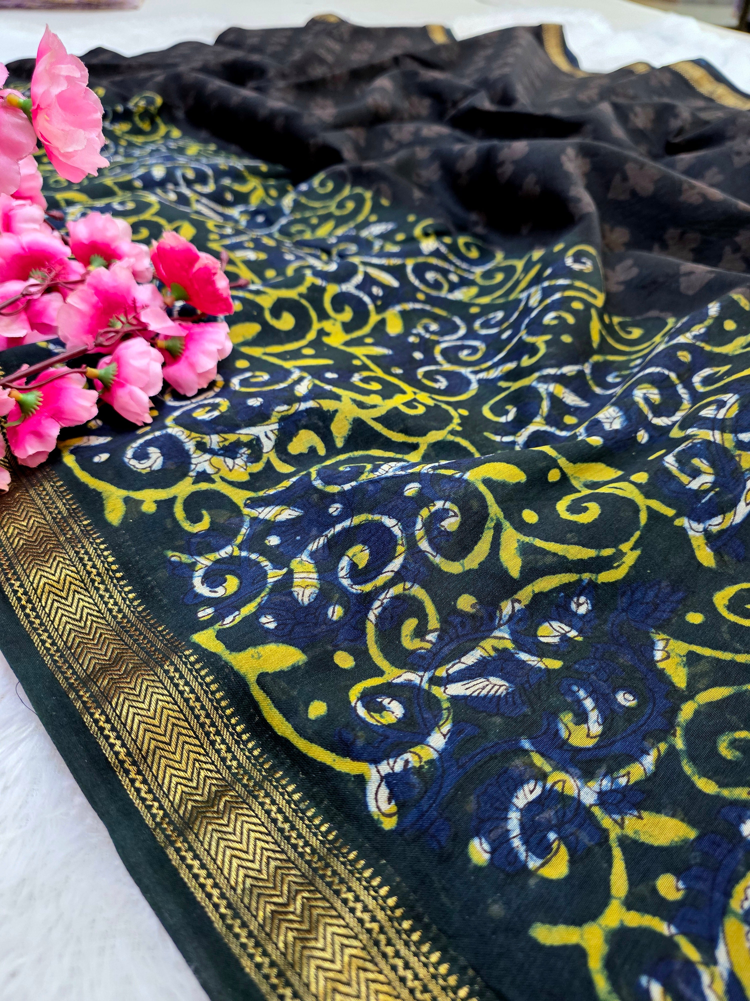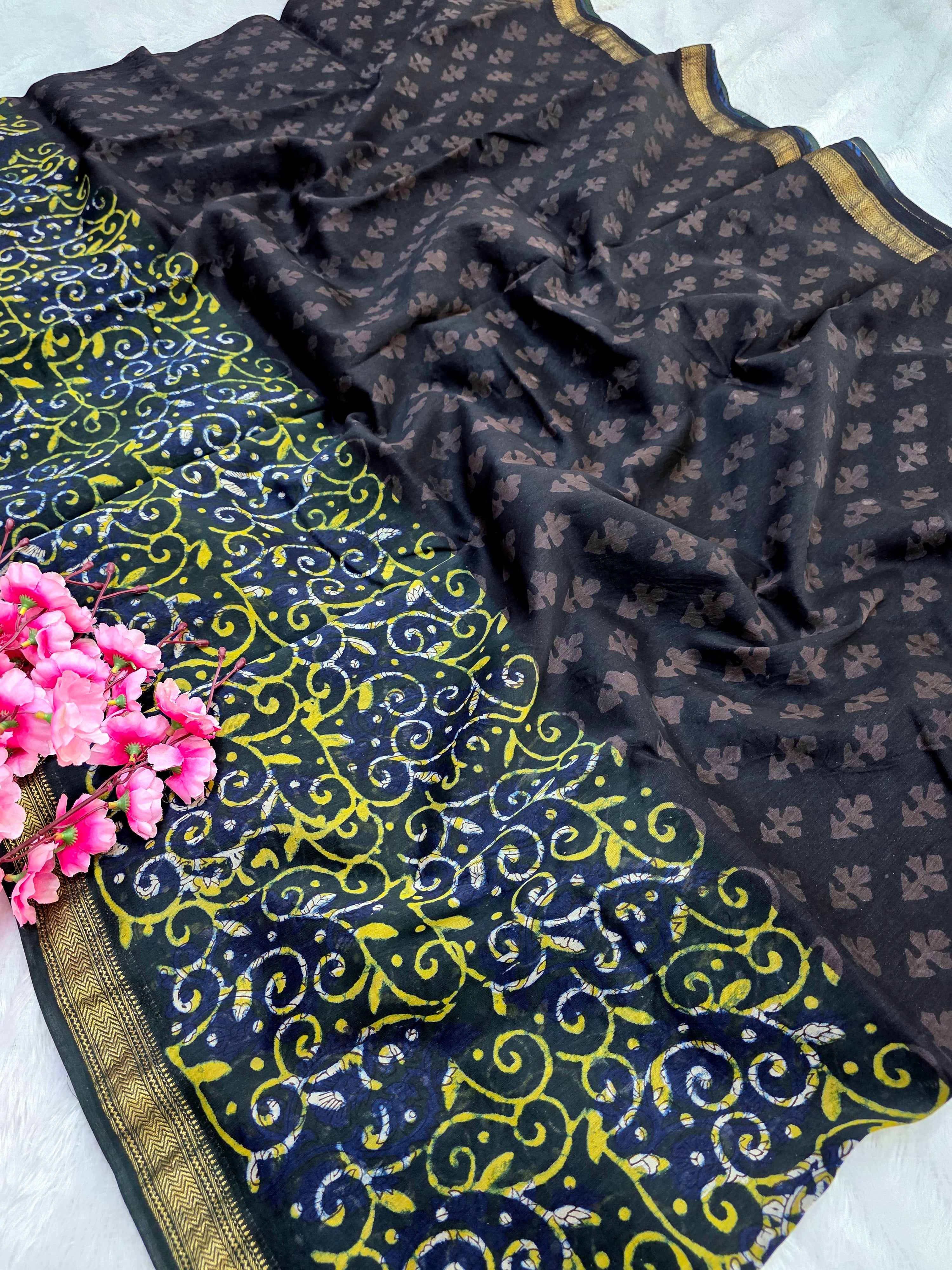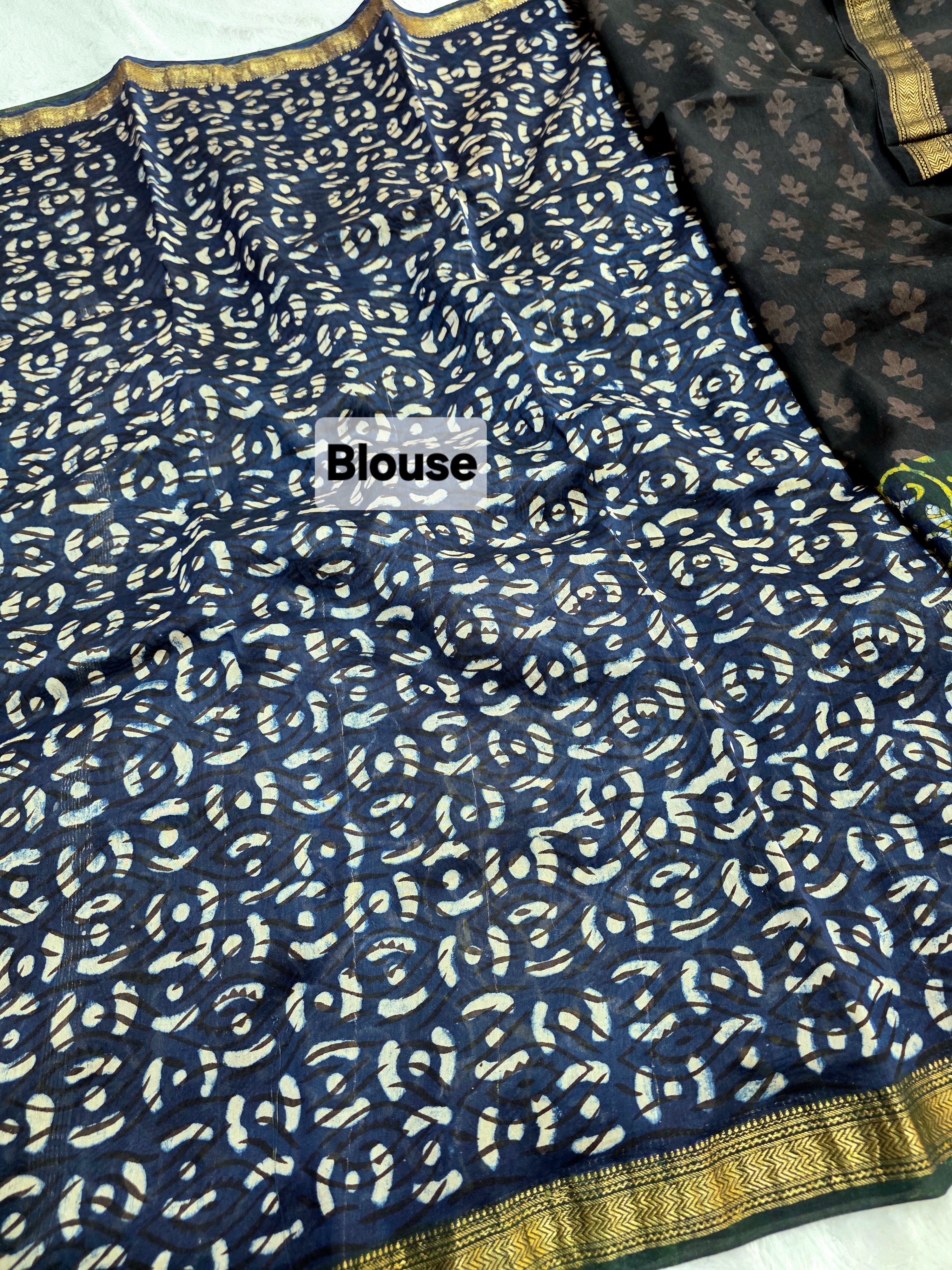 578010 शुद्ध माहेश्वरी कॉटन सिल्क हैंडब्लॉक प्रिंटेड साड़ी
