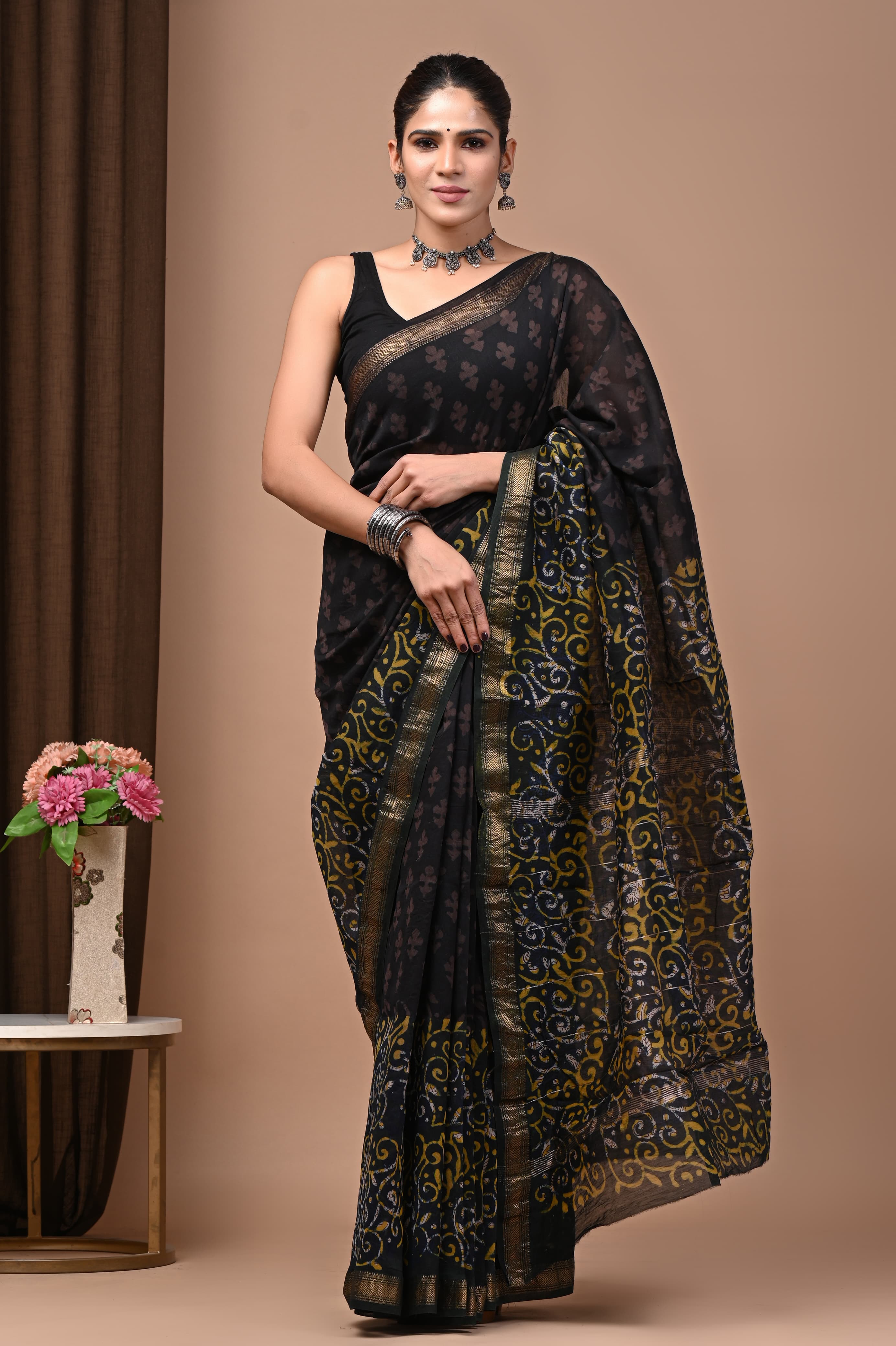 Home 578010 शुद्ध माहेश्वरी कॉटन सिल्क हैंडब्लॉक प्रिंटेड साड़ी
