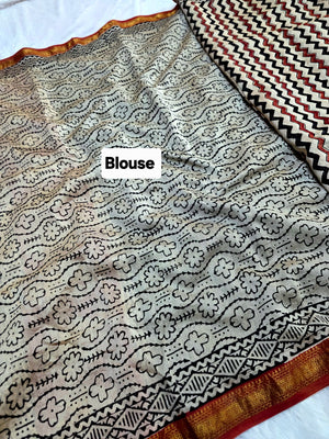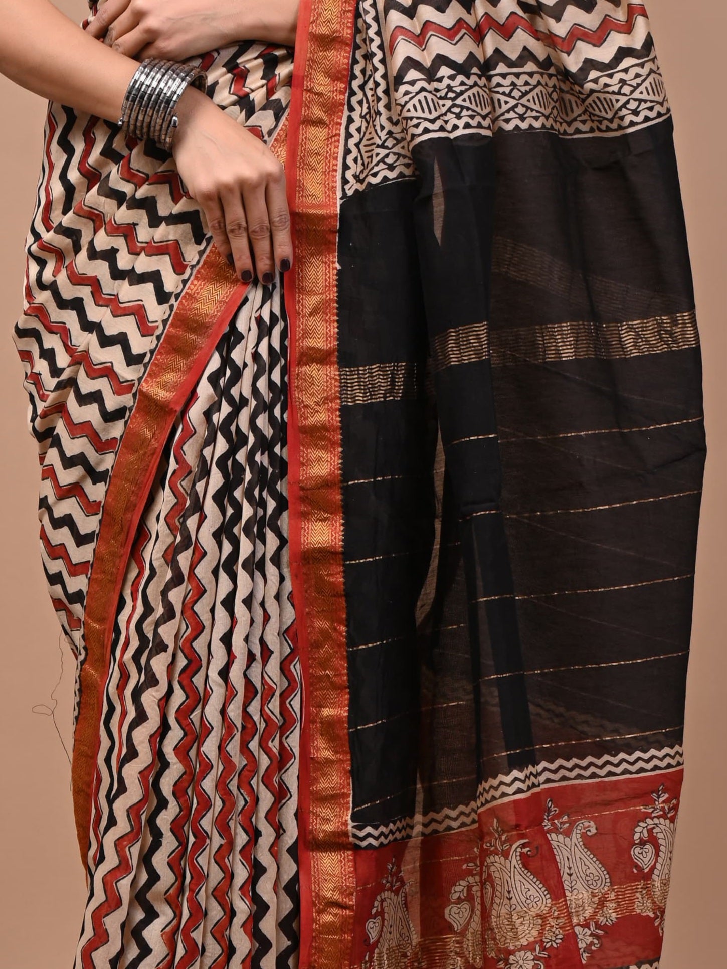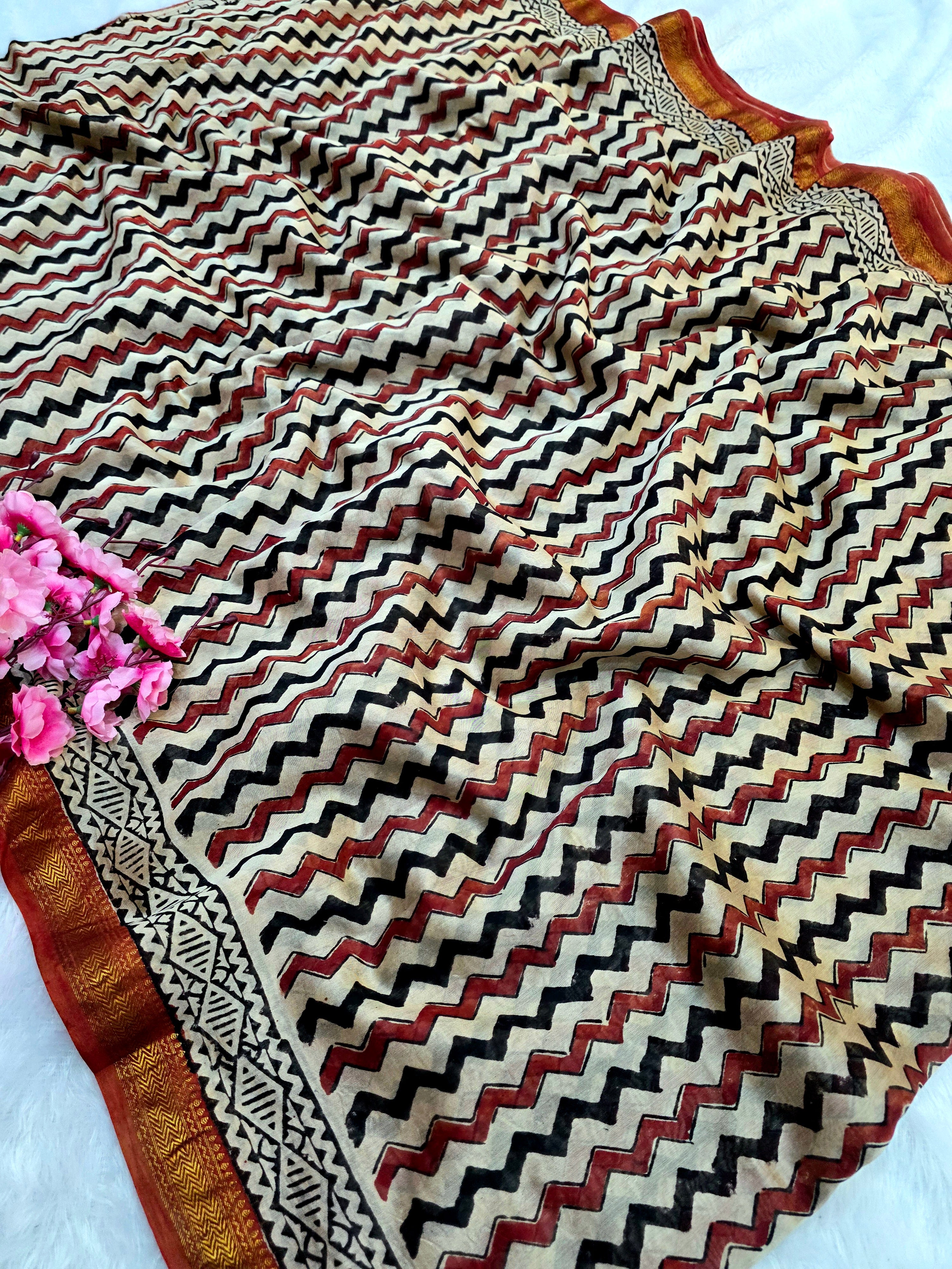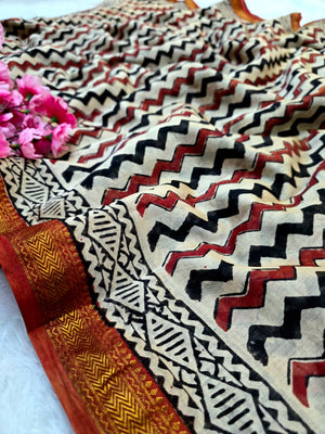 578010 शुद्ध माहेश्वरी कॉटन सिल्क हैंडब्लॉक प्रिंटेड साड़ी