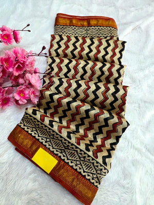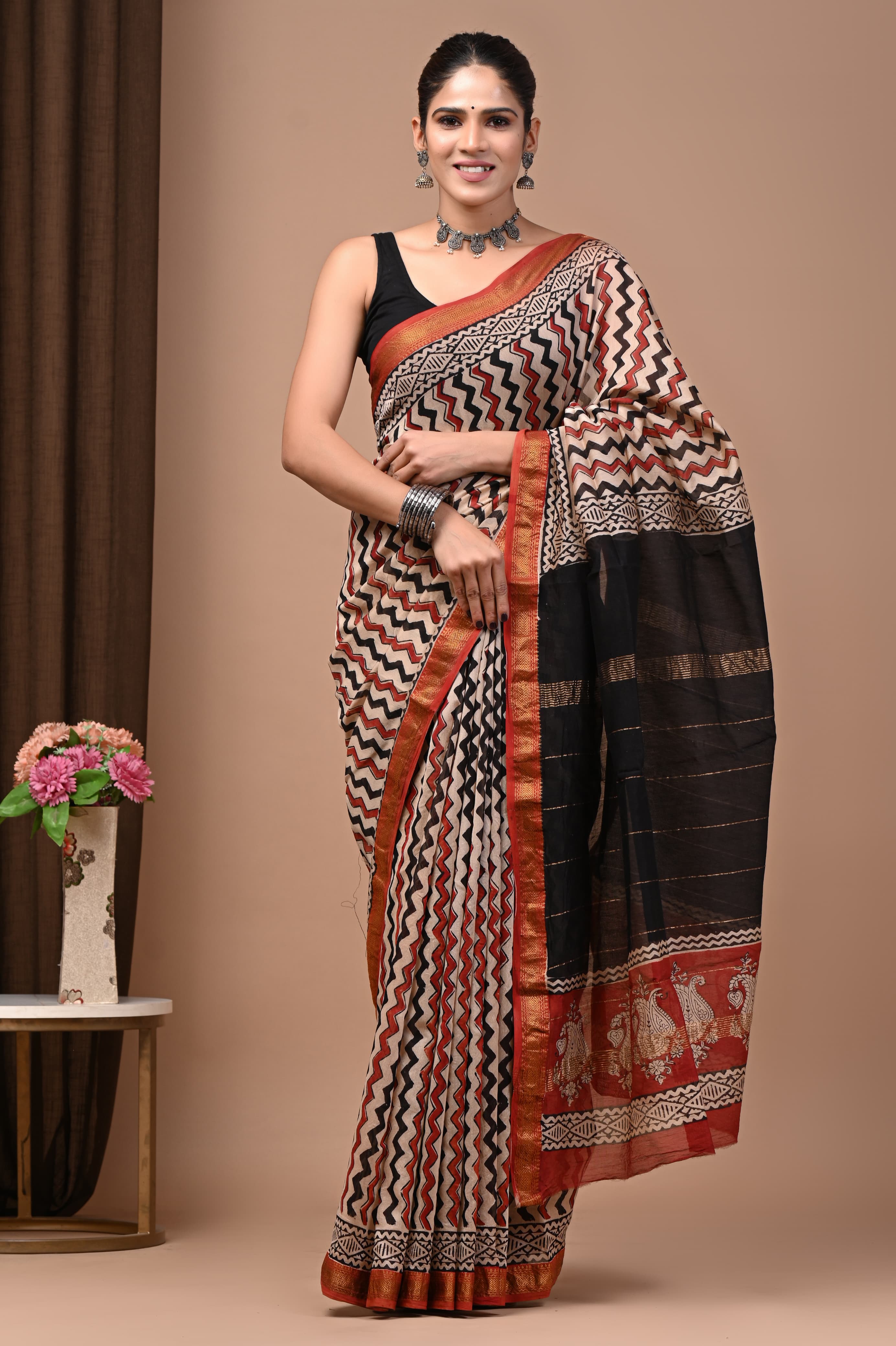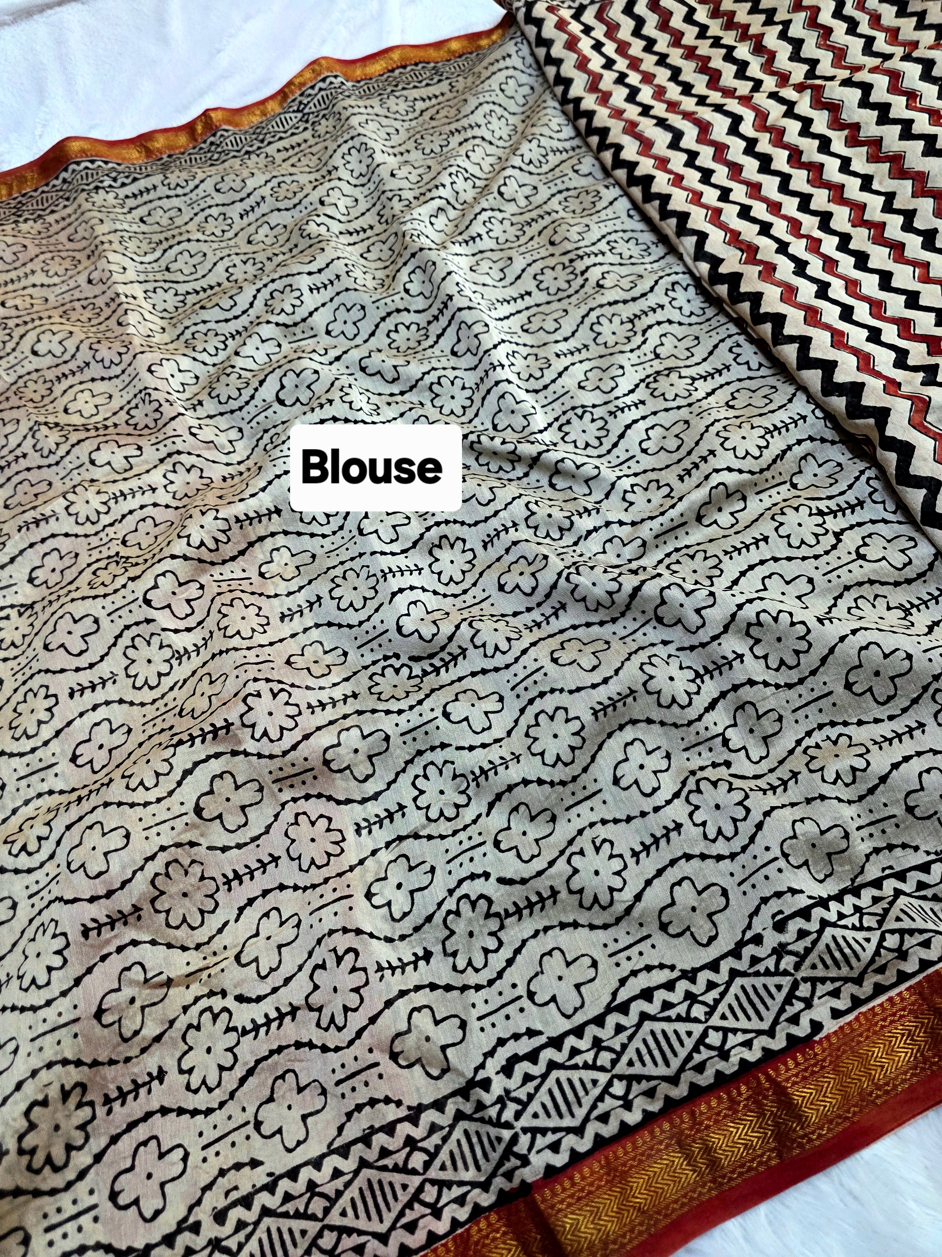 Home 578010 शुद्ध माहेश्वरी कॉटन सिल्क हैंडब्लॉक प्रिंटेड साड़ी