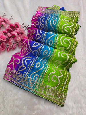 819003 Exclusive Pure Gajji Silk Rajasthani Hand Rai Bandhani Ghatchola Saree With Premium Gotapatti Work