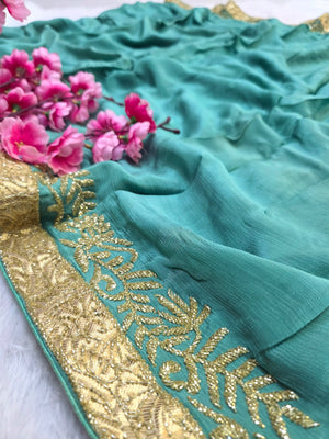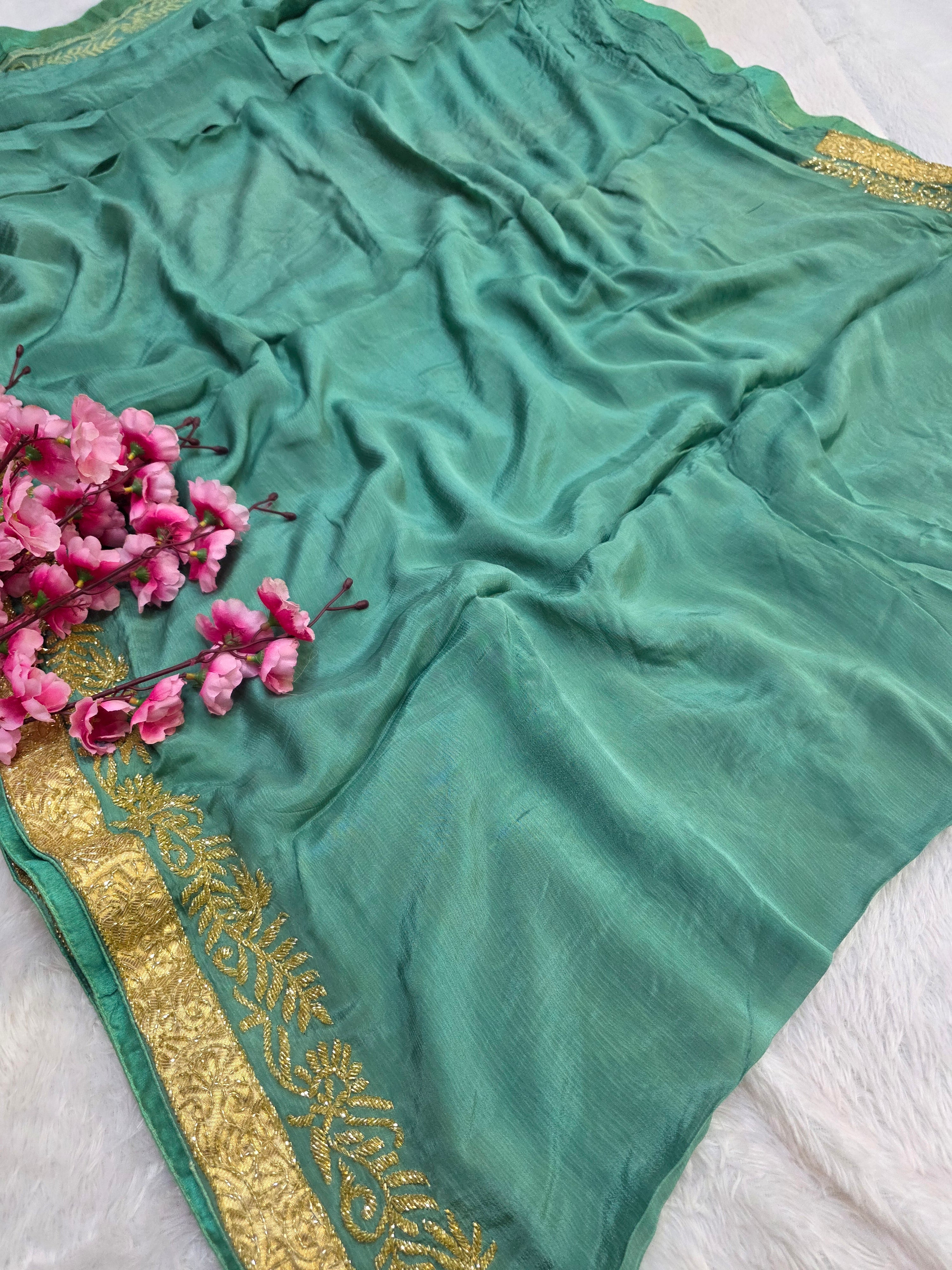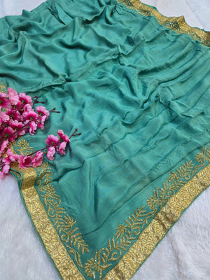 828009 Exclusive Designer Green Saree with Heavy Cutdana Work Border (142001)