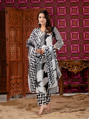 Home 835005 Pure Cotton Straight Digital Print Cotton Kurti Set With Pant and Dupatta