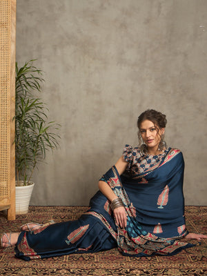 682002 ट्रेंडिंग अजरख प्रिंट इटैलियन क्रेप सिल्क साड़ी