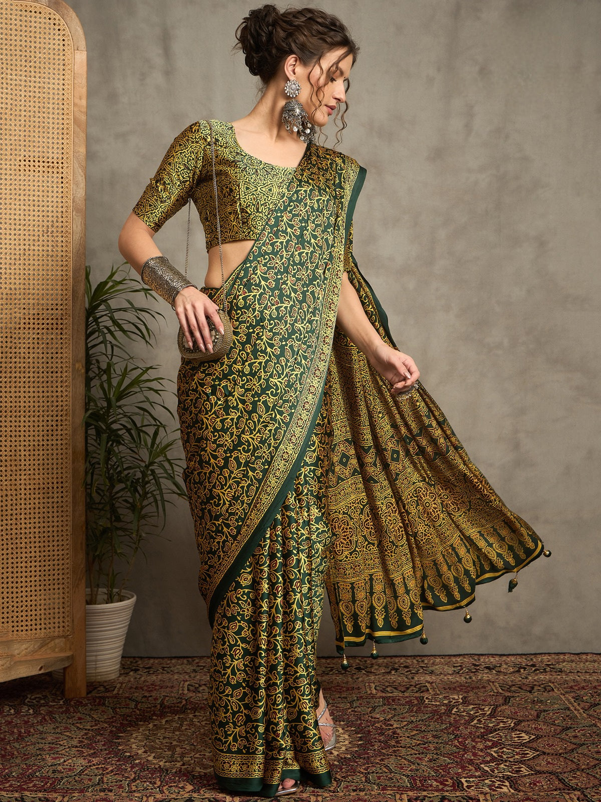 More Options: 682002 ट्रेंडिंग अजरख प्रिंट इटैलियन क्रेप सिल्क साड़ी