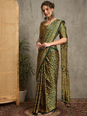 Home 682002 ट्रेंडिंग अजरख प्रिंट इटैलियन क्रेप सिल्क साड़ी