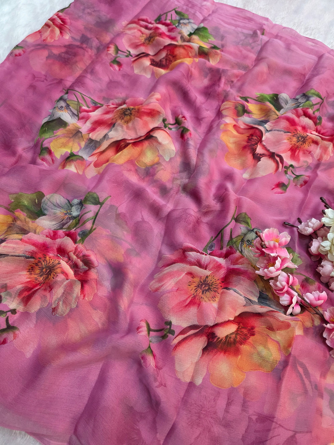 644001 एक्सक्लूसिव शिफॉन फ्लावर प्रिंट साड़ी - हरा