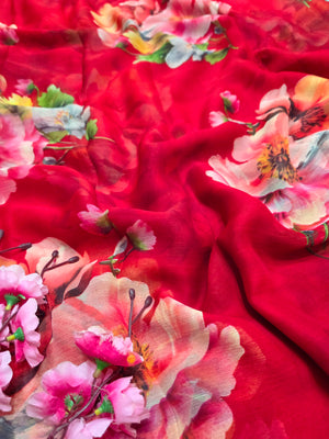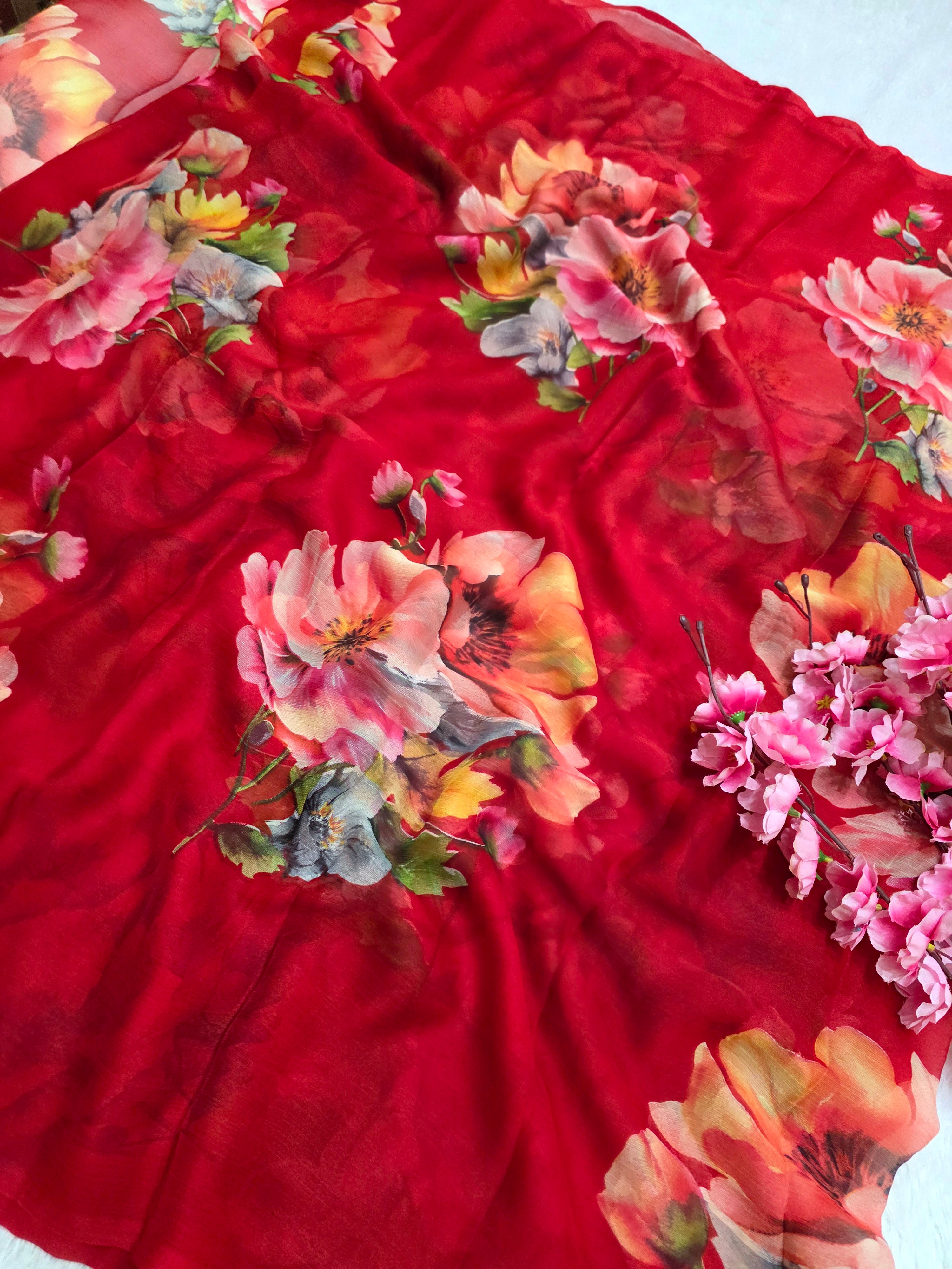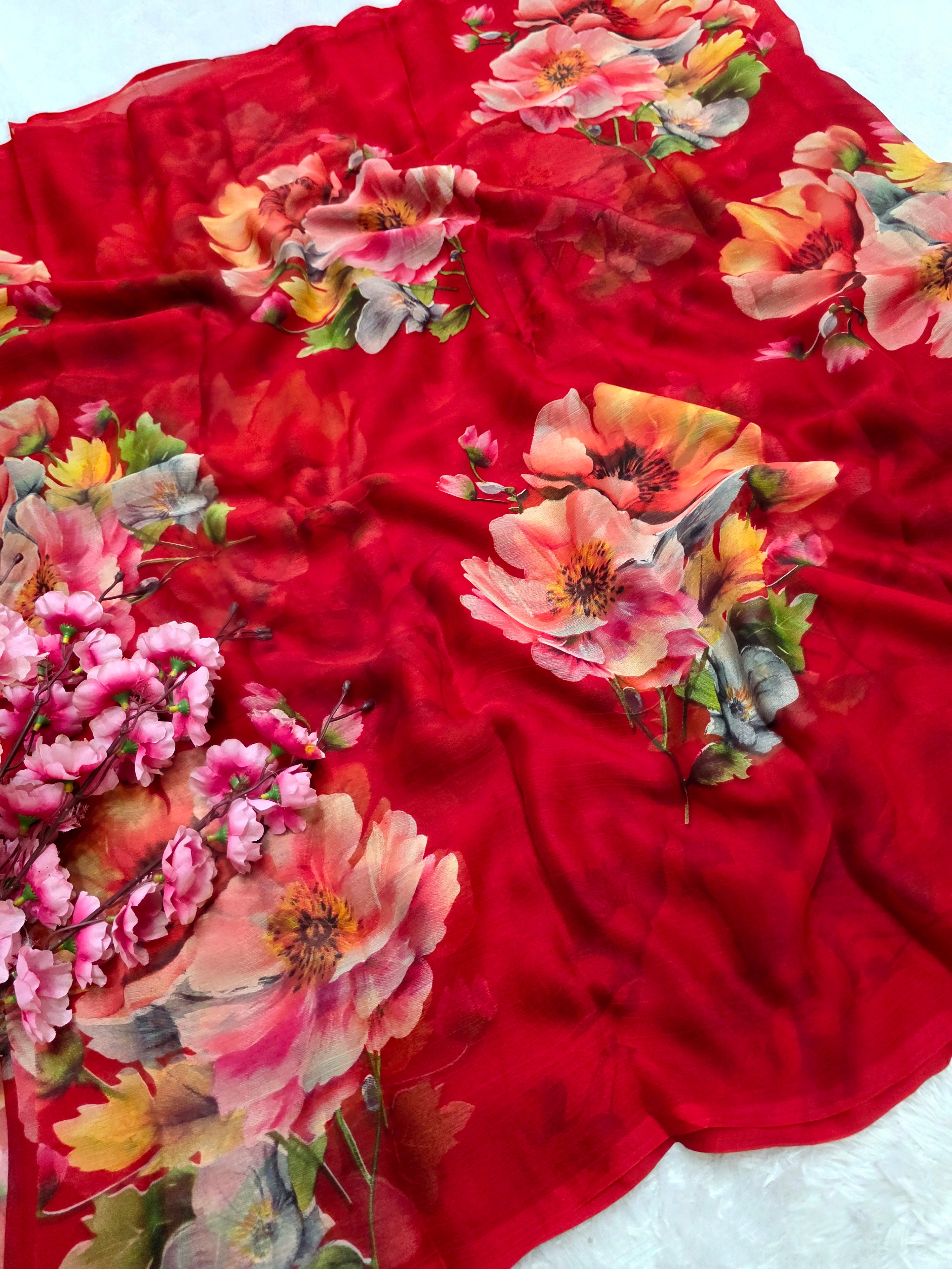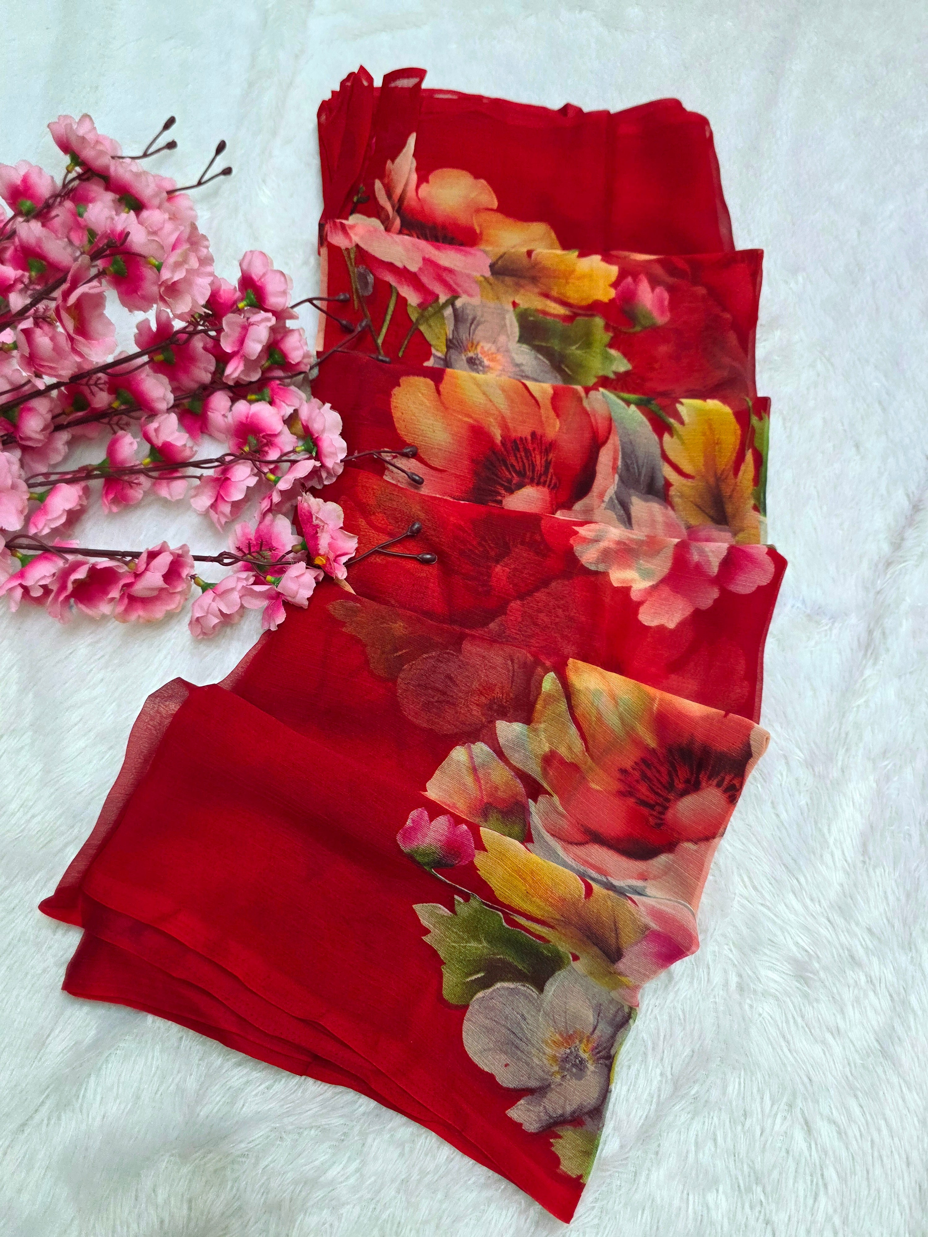 644001 एक्सक्लूसिव शिफॉन फ्लावर प्रिंट साड़ी - हरा
