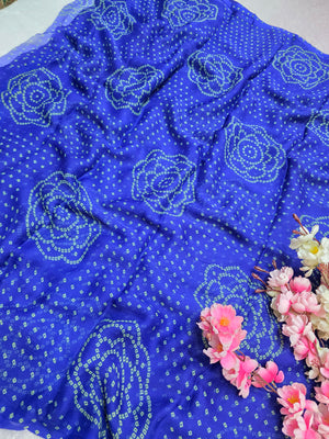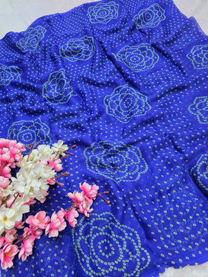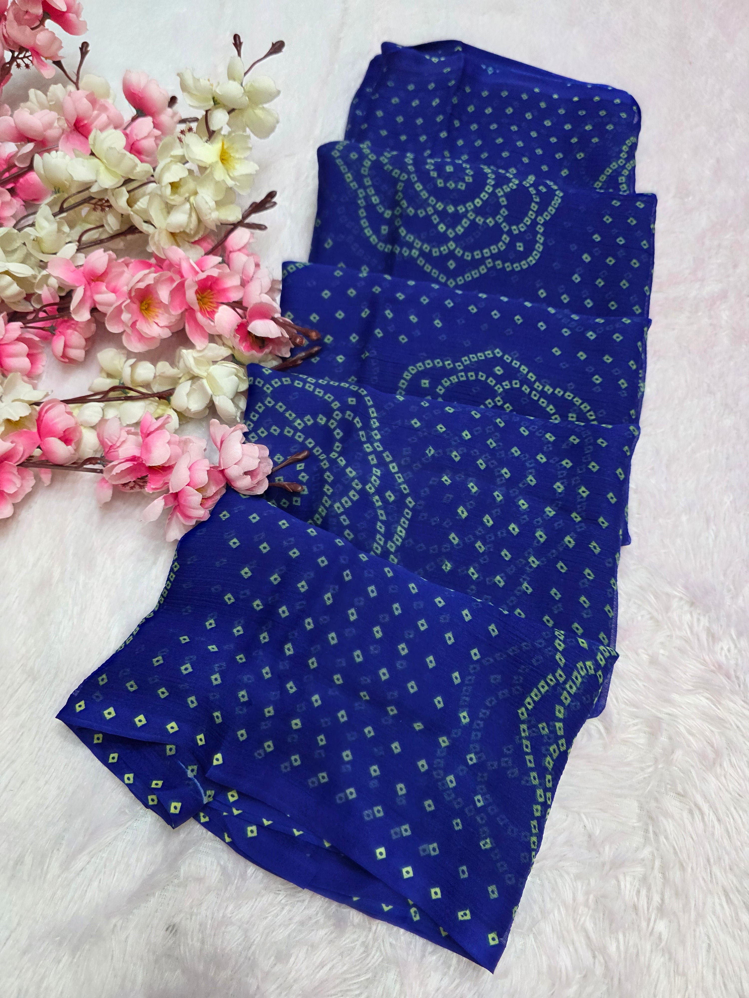 644001 एक्सक्लूसिव शिफॉन फ्लावर प्रिंट साड़ी - हरा