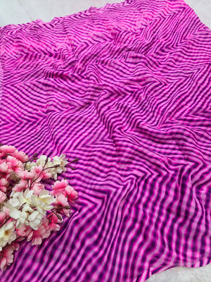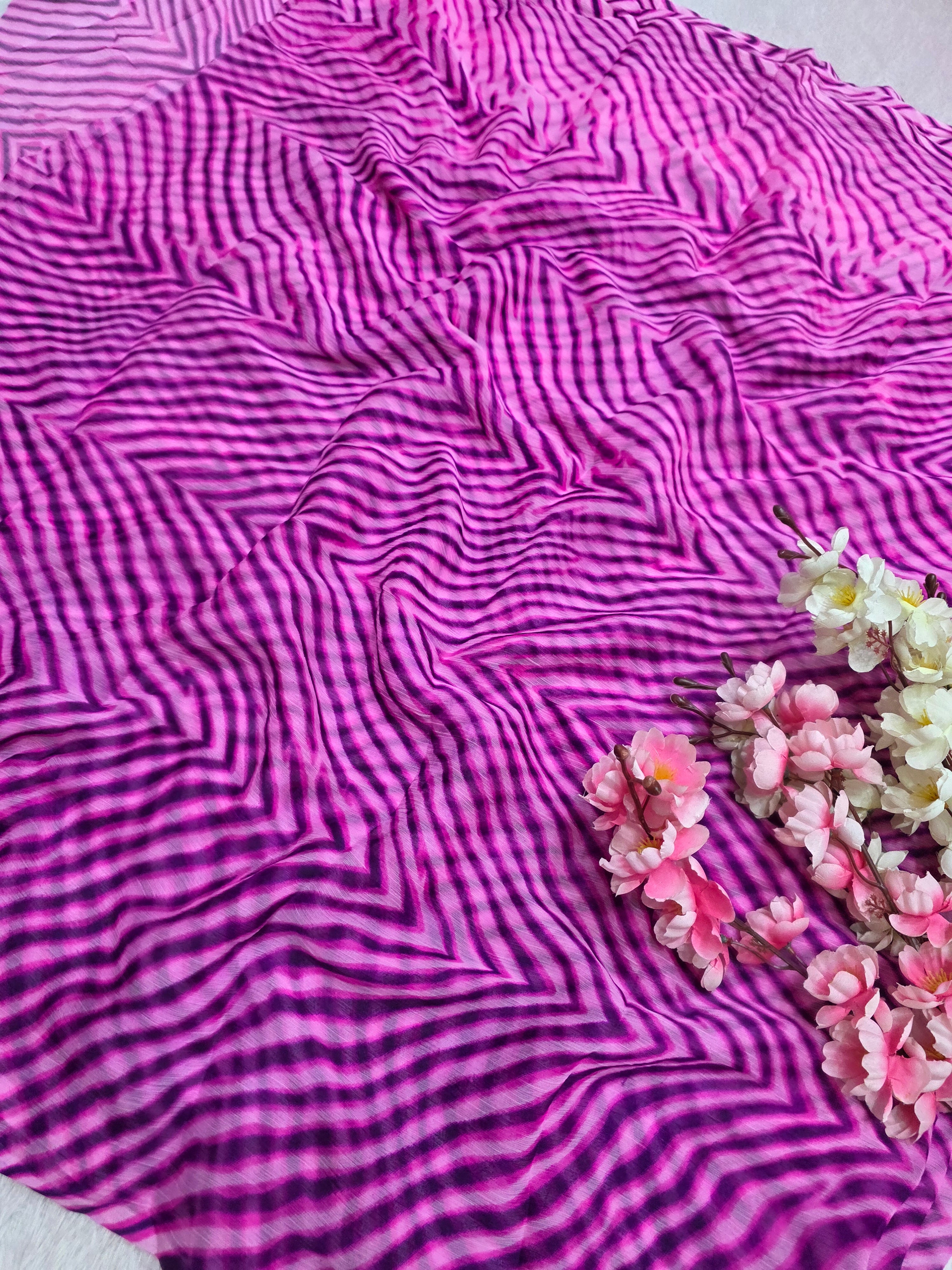 644001 एक्सक्लूसिव शिफॉन फ्लावर प्रिंट साड़ी - हरा