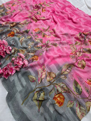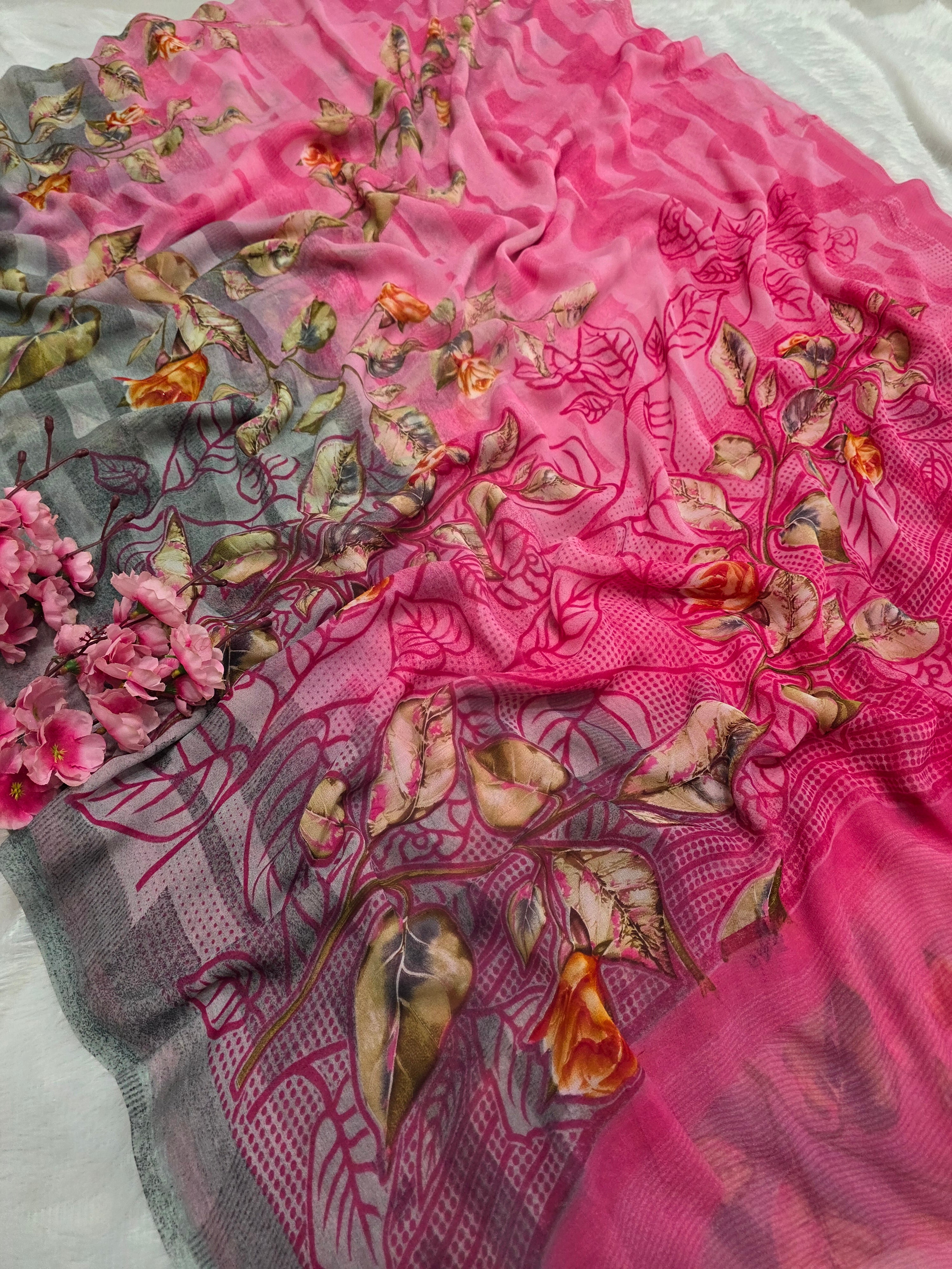 626009 हैवी जॉर्जेट डिजिटल प्रिंट साड़ी