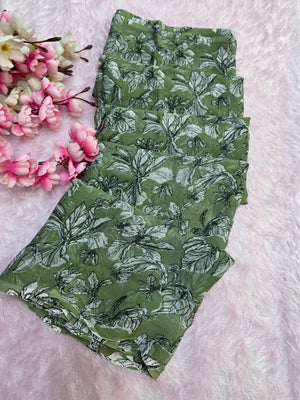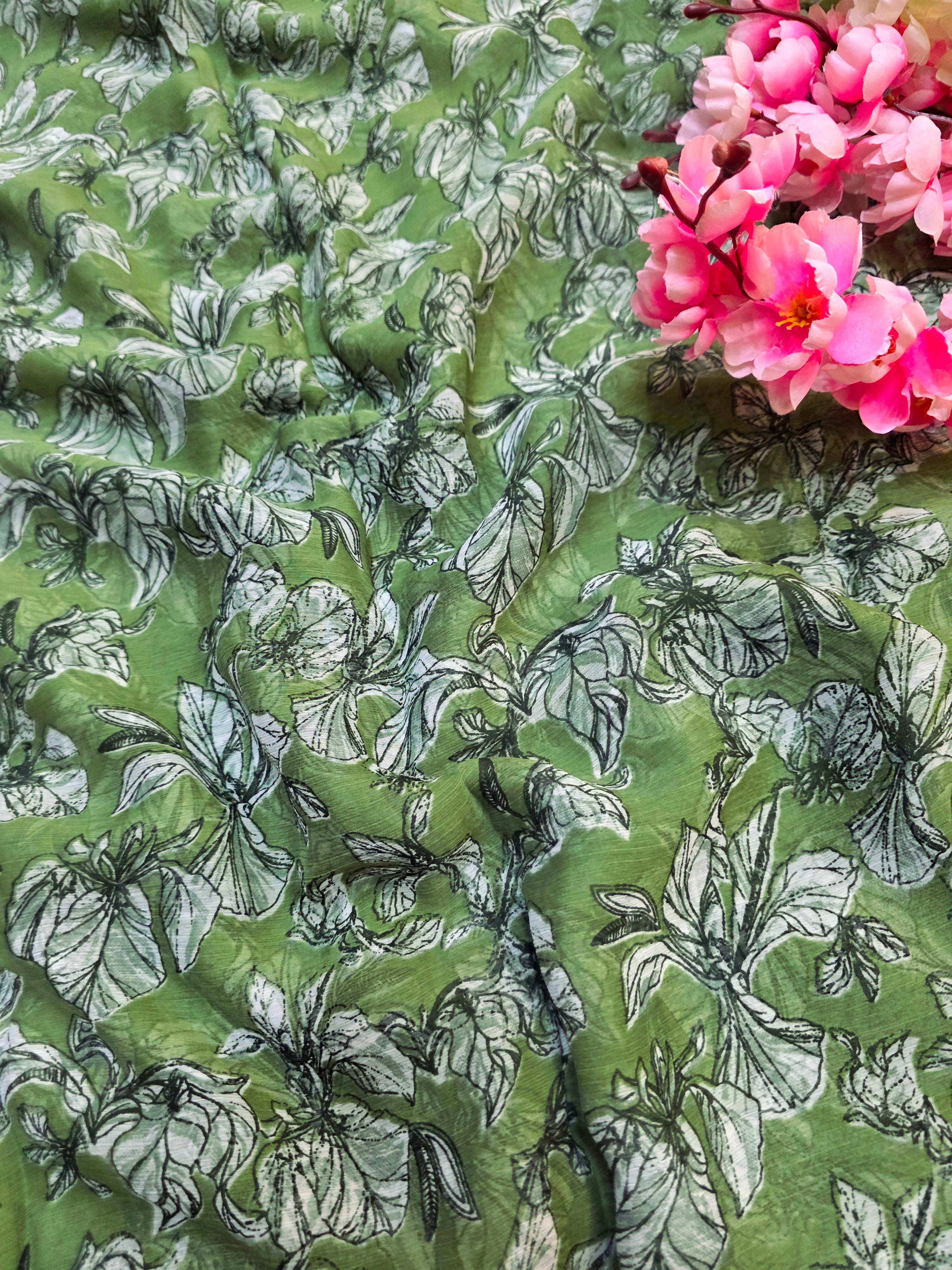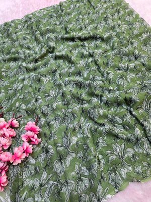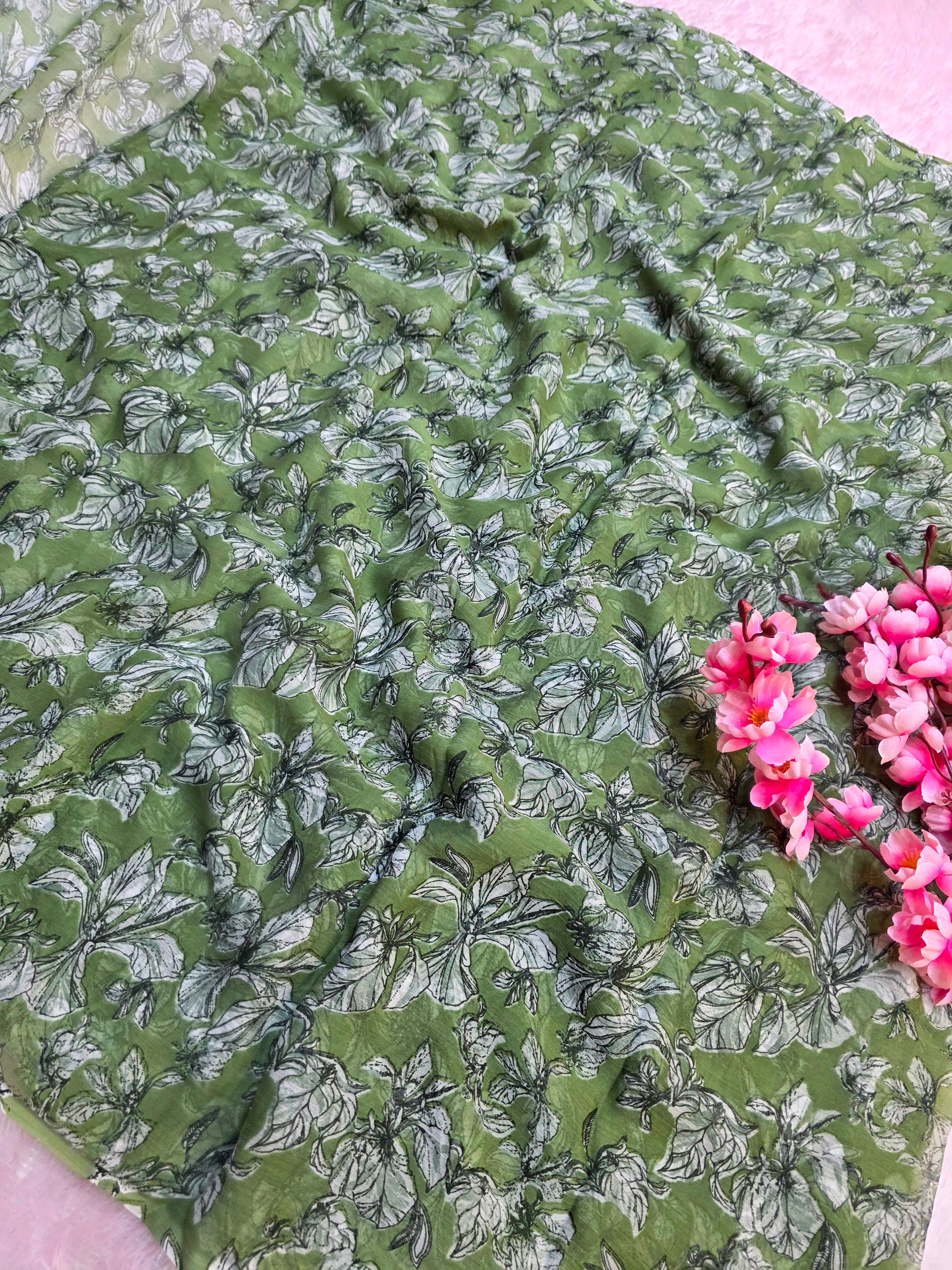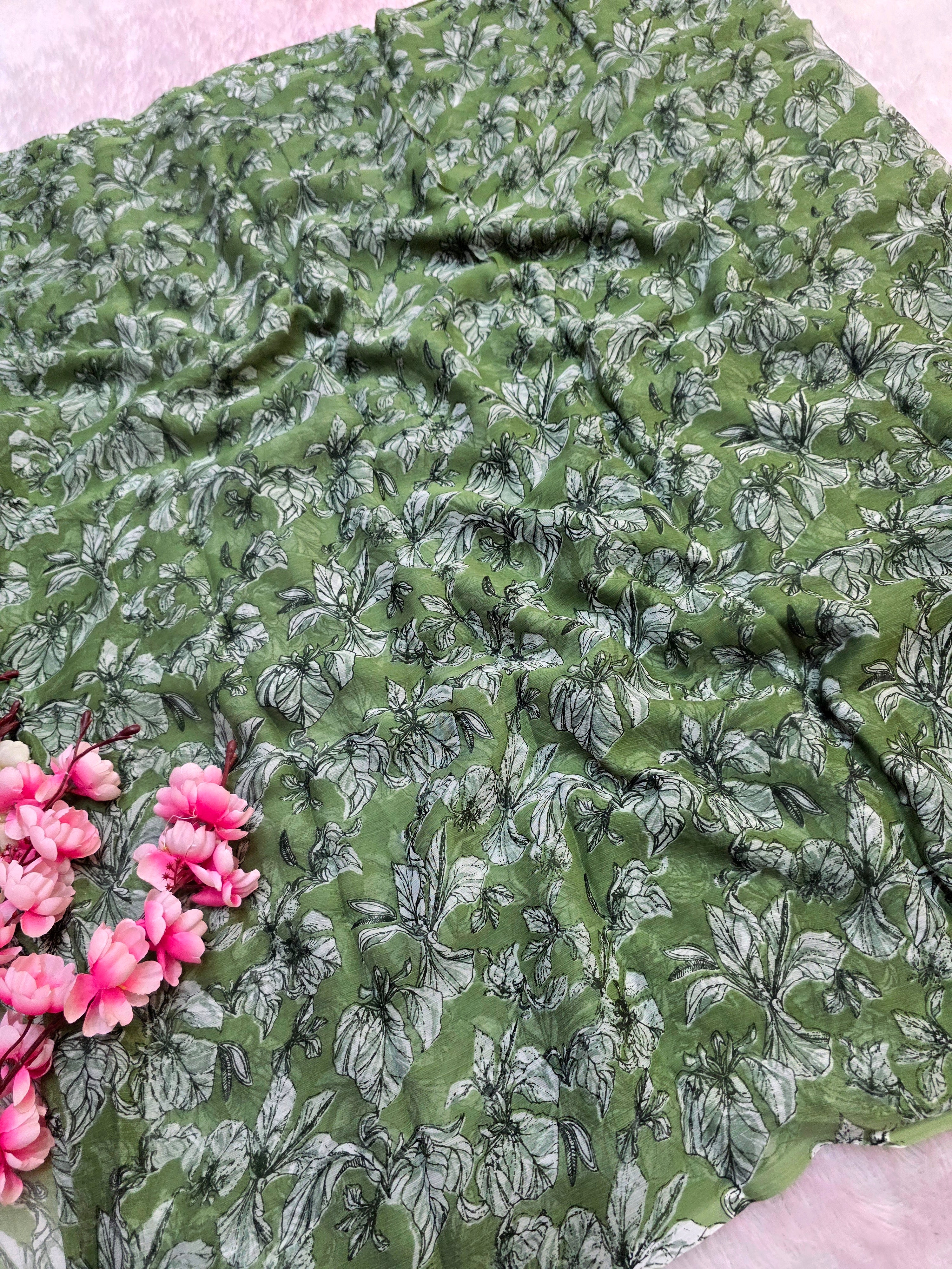 644001 एक्सक्लूसिव शिफॉन फ्लावर प्रिंट साड़ी - हरा