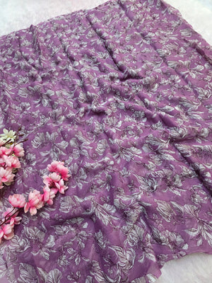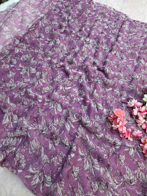 644001 एक्सक्लूसिव शिफॉन फ्लावर प्रिंट साड़ी - हरा