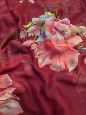 644001 एक्सक्लूसिव शिफॉन फ्लावर प्रिंट साड़ी - हरा