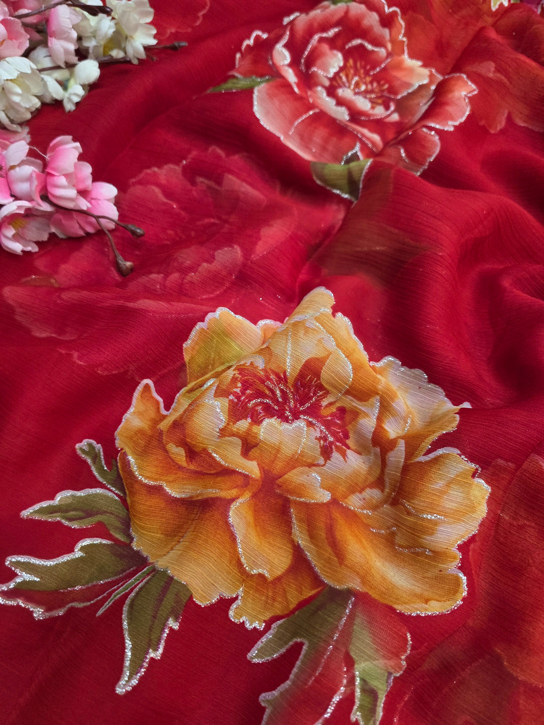644001 एक्सक्लूसिव शिफॉन फ्लावर प्रिंट साड़ी - हरा