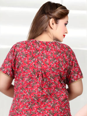 888007 Very Soft And Comfortable Night Gown with One Side Pocket - Red