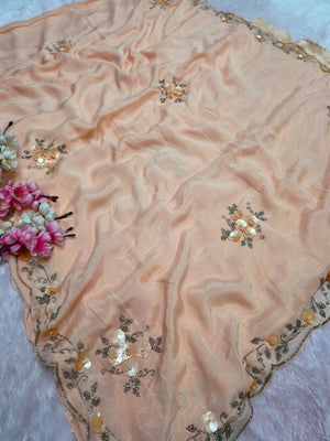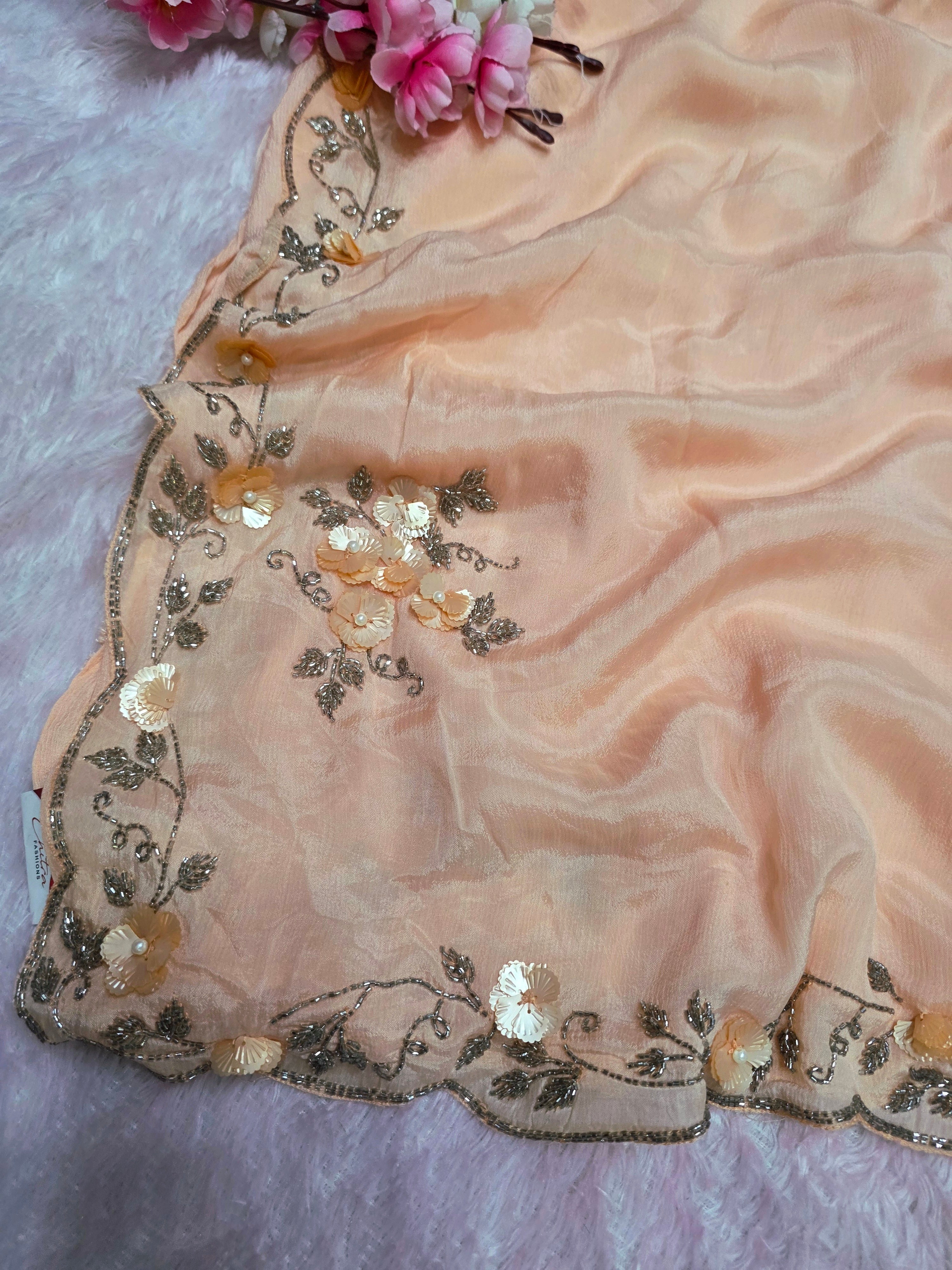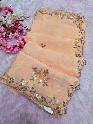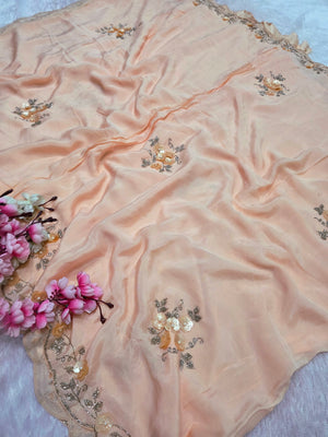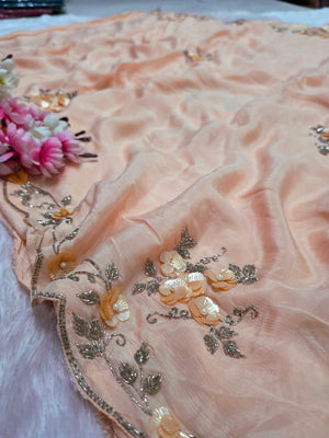 164002 शुद्ध ओपरा सिल्क डिजाइनर छायांकित साड़ी भारी कटदाना हाथ के काम के साथ